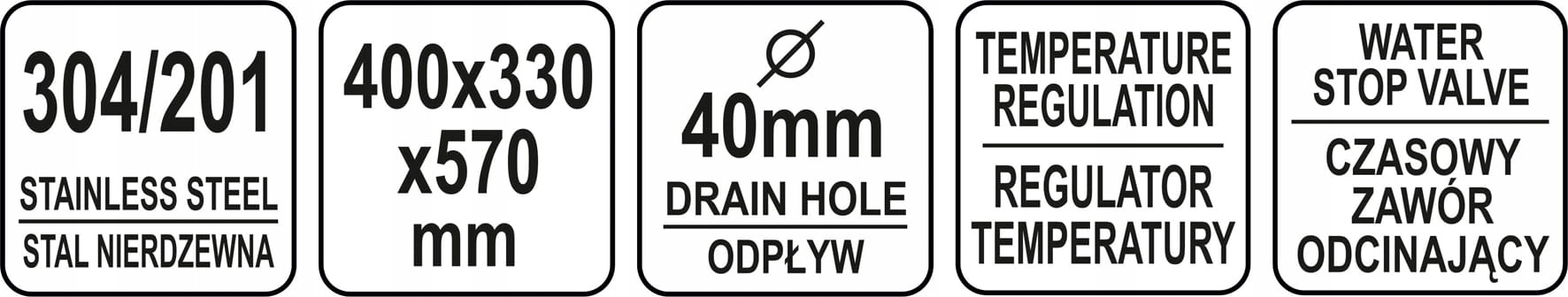 Колінний умивальник YATO виготовлений з високоякісної нержавіючої сталі. У комплект також входить бічний вилив, дозатор для мила і набір вентилів і шлангів, необхідних для установки умивальника і підключення його до водопровідної мережі.