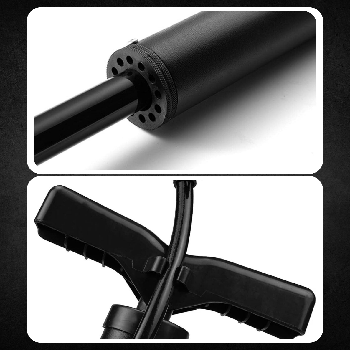 Інтегрована стопа дозволяє стабільно встановлювати насос на землі, що полегшує накачування та забезпечує більший комфорт використання.