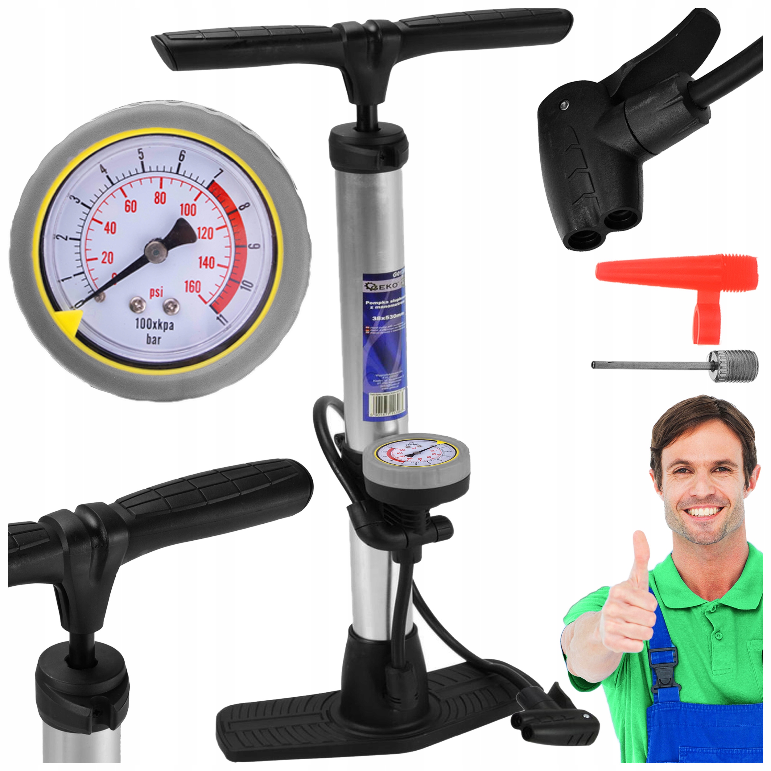 ПОЛОВИЙ РУЧНИЙ НАСОС З АЛЮМІНІЄВИМ МАНОМЕТРОМ 38 x 530 мм GEKO PROFI + ДОДАТКОВІ ФІТІНГИ