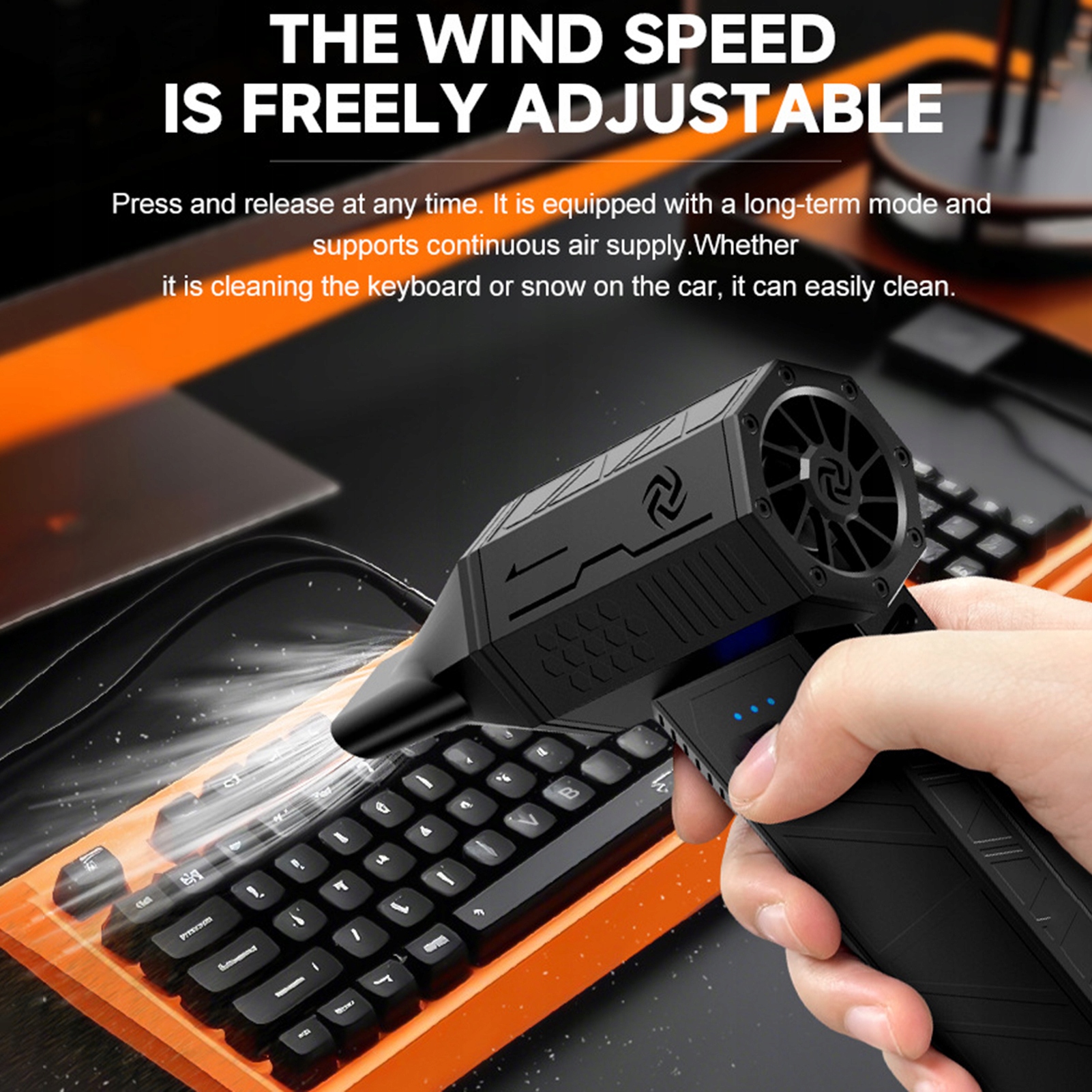 2. Потужна технологія вентиляторів Turbo: з швидким двигуном, який досягає до 110 000 об/хв і потужним безчесним двигуном з 120 Вт, цей повітряний повітря ефективно видаляє пил та залишки. Завдяки 3 регульованим налаштуванням швидкості ви можете регулювати джерело живлення для задоволення конкретних потреб у чистці.
