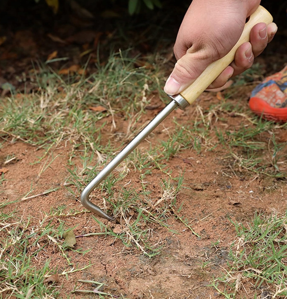 Матеріал з нержавіючої сталі: Гачок для трави виготовлено з нержавіючої сталі, яка є міцною та довговічною та не деформується легко. Стійкий до іржі та чудово відполірований. Ідеальний засіб для прополки, можна використовувати протягом тривалого часу.