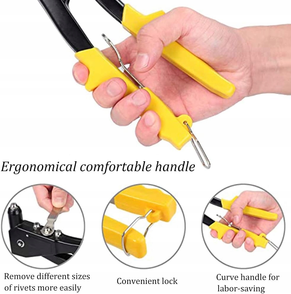 - Зручна ручка, що не ковзає: наш ручний пістолет для заклепок розроблено з нековзкою ручкою, який зручно тримати та використовувати.