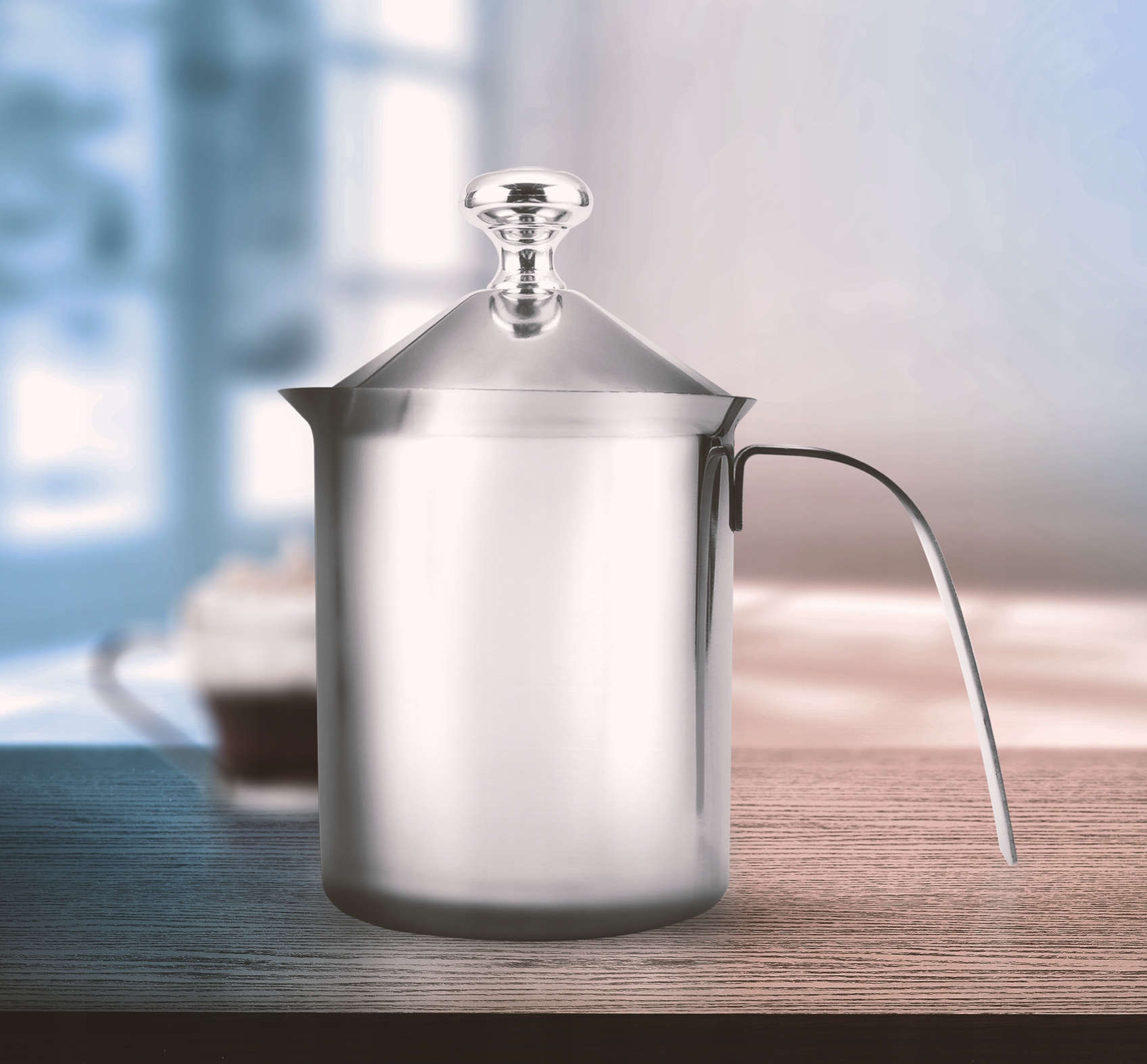 З об'ємом 850 мл наш спінювач дозволяє приготувати вершкову піну, ідеальну для вашої улюбленої кави. Виготовлений із міцного металу, він забезпечує довговічність і елегантний вигляд, який ідеально підходить для кожної кухні.