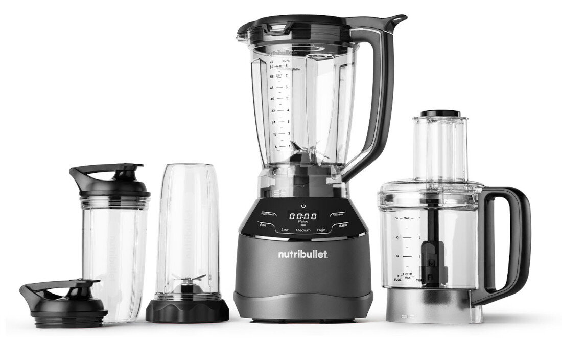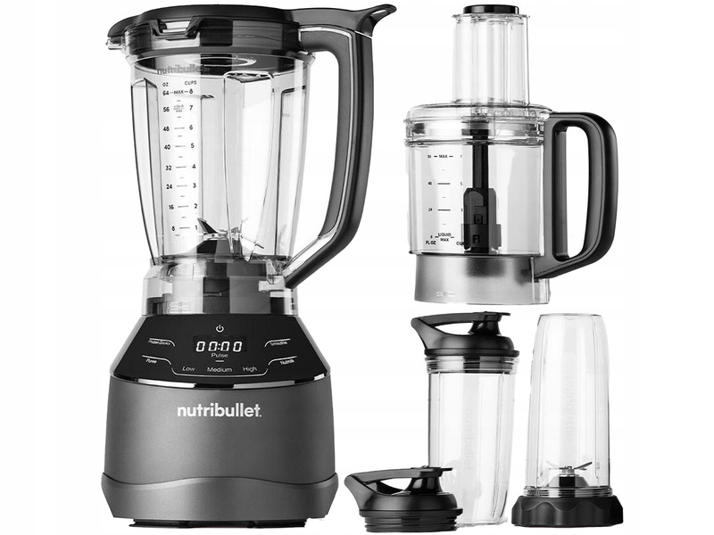 Глечик-блендер NUTRIBULLET Triple Prep System NBF580 чорний, 1 чашка 700 мл, лезо для подрібнення, 2 пляшки, 2 кришки для чашок, 1 нержавіюча сталь лезо, 1 диск для нарізки та подрібнення, 1 лезо для тіста, 1 кухонний комбайн місткістю 1,6 л, чашка ємністю 1,8 л, 1 х чашка 900 мл, документація.
