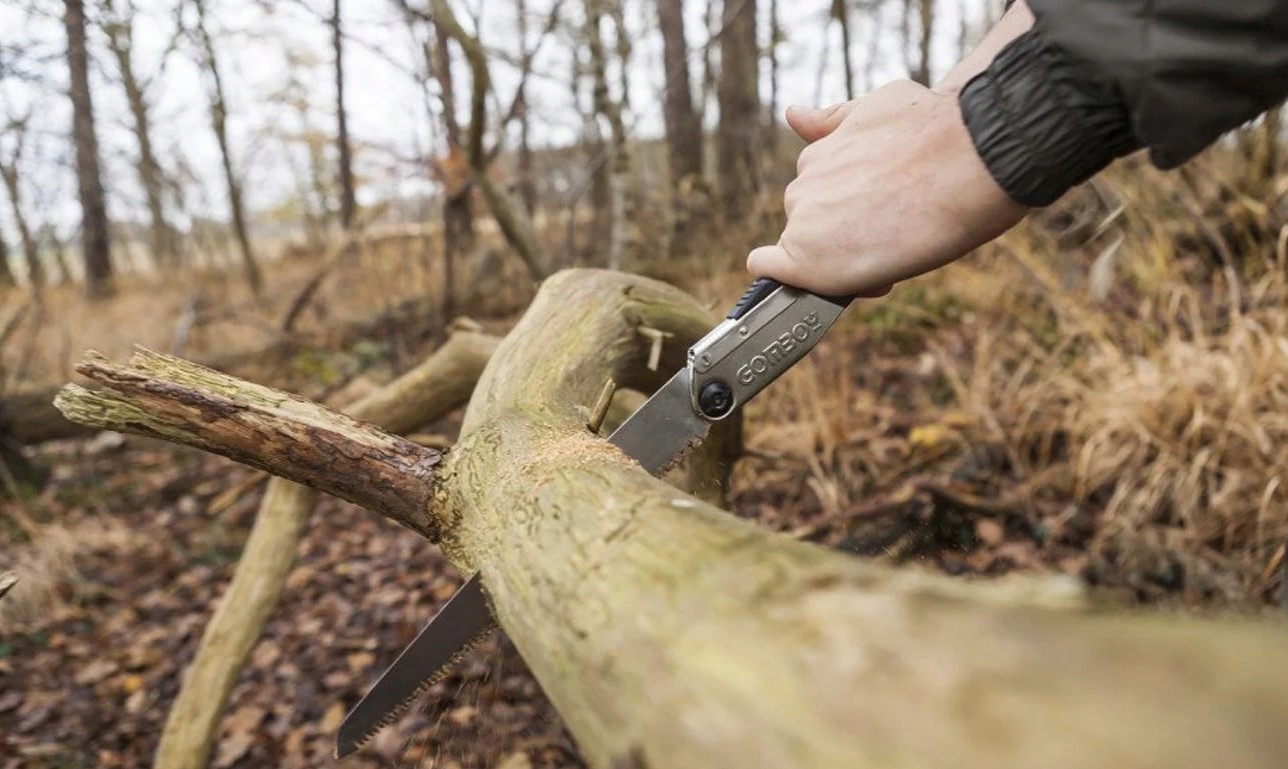 Легка та професійна складна пила. Це дозволяє виконувати теслярські, теслярські та садові роботи, такі як обрізка гілок або різання блоків деревини.