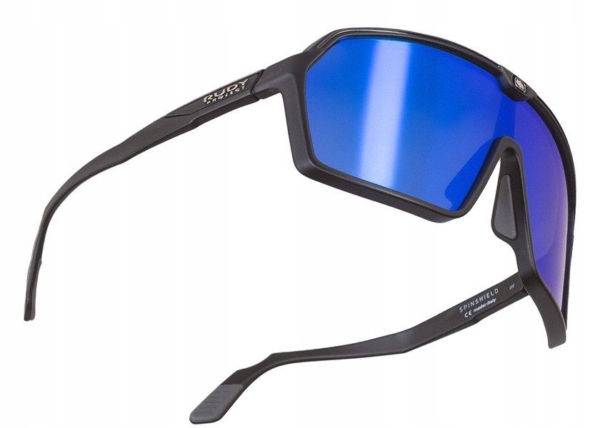 Модель окулярів Rudy Project Spinshield поєднує в собі різкий стильний дизайн з духом продуктивності. Він забезпечує необмежений захист очей та відмінний комфорт для очей, поєднуючи широкі вигнуті лінзи з глибоким горизонтом, ультра клею з гумовими наконечниками та носами, забезпечуючи при цьому точну та стабільну придатність завдяки ергономічній геометрії про підготовлених храмів. Блюсцерський синій об'єктив RP Optics, що використовується в цій моделі, присвячений спортивним заняттям в умовах сильного сонячного світла. Сучасний стиль моделі Spinshield збагачується оригінальним барвистим поясом 1986 року, що зміцнюють металеві елементи з боків та деталей, які нагадують вам про характерну спадщину.