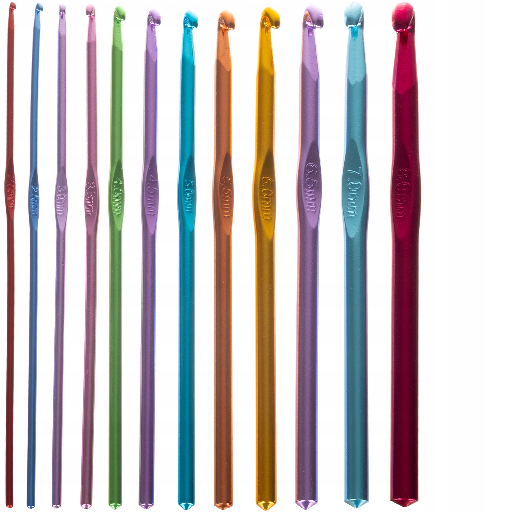 - 12 кольорових гачків для в’язання: 2.0, 2.5, 3.0, 3.5, 4.0, 4.5, 5.0, 5.5, 6.0 , 6,5, 7,0, 8,0 мм