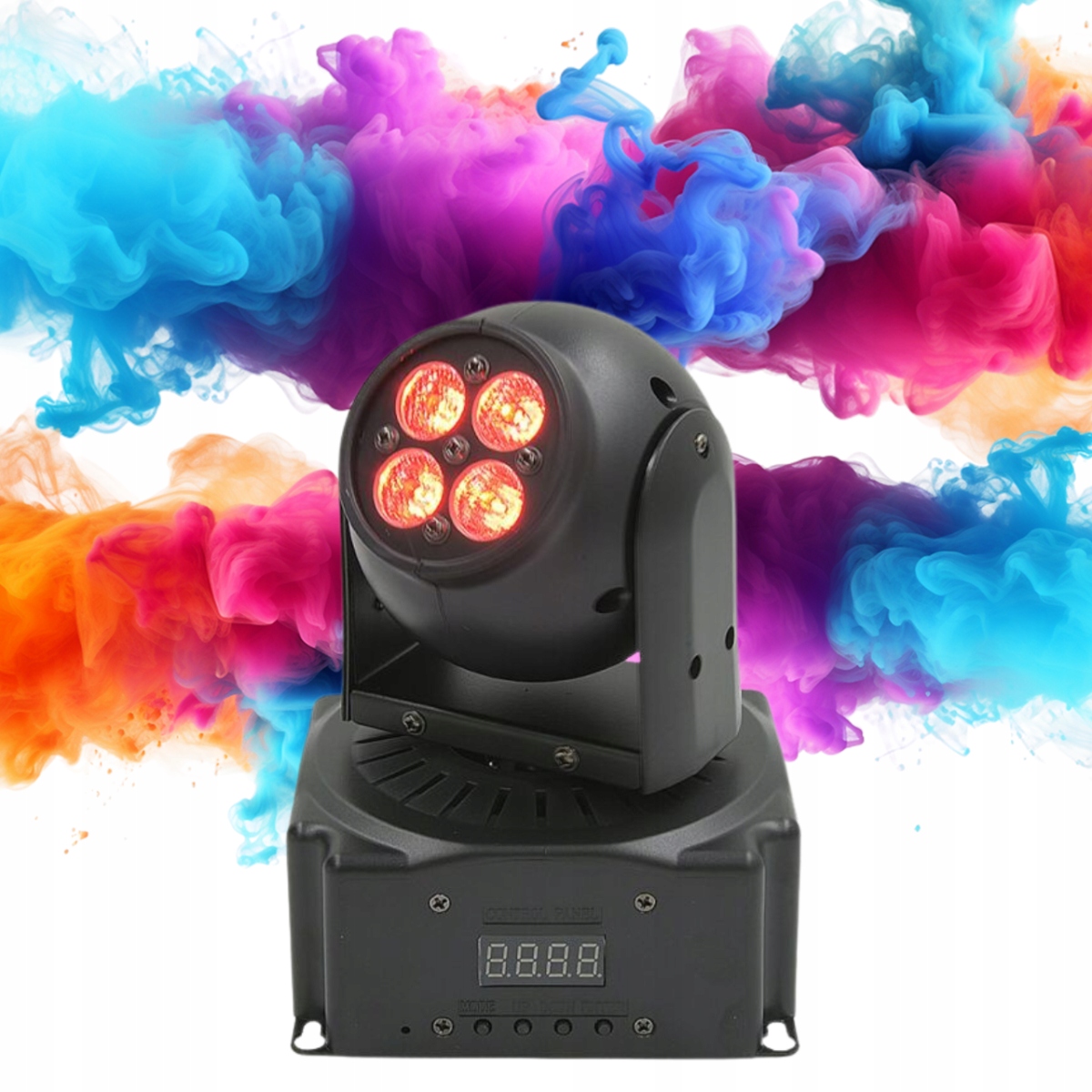 nn 408 міні -миття - компактна рухома головка світлодіодного промивання, яка створює активне освітлення для сцен і танцювального паркетів. Фара - це ідеальне рішення для мобільних ді -джеїв, груп та компаній з подій, а також невеликих музичних клубів та дискотеки. Він має 4 сильні, 9-ватні світлодіоди, що працюють у палітрі RGB . 4