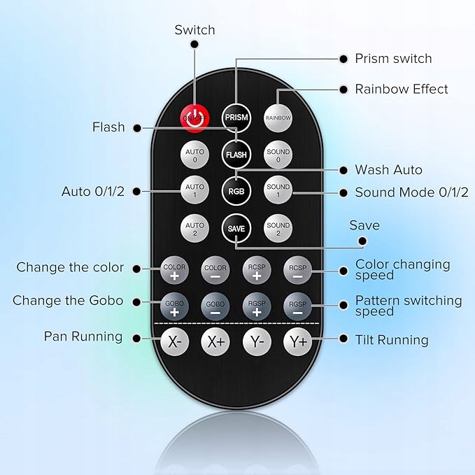 - Пульт дистанційного керування: Ця рухома головка працює підключи та працюй. Ви можете повісити сценічні вогні на ферми або встановити їх на стіни чи інші місця, які ви хочете прикрасити. Радіус дії пульта дистанційного керування становить не менше 10 метрів.