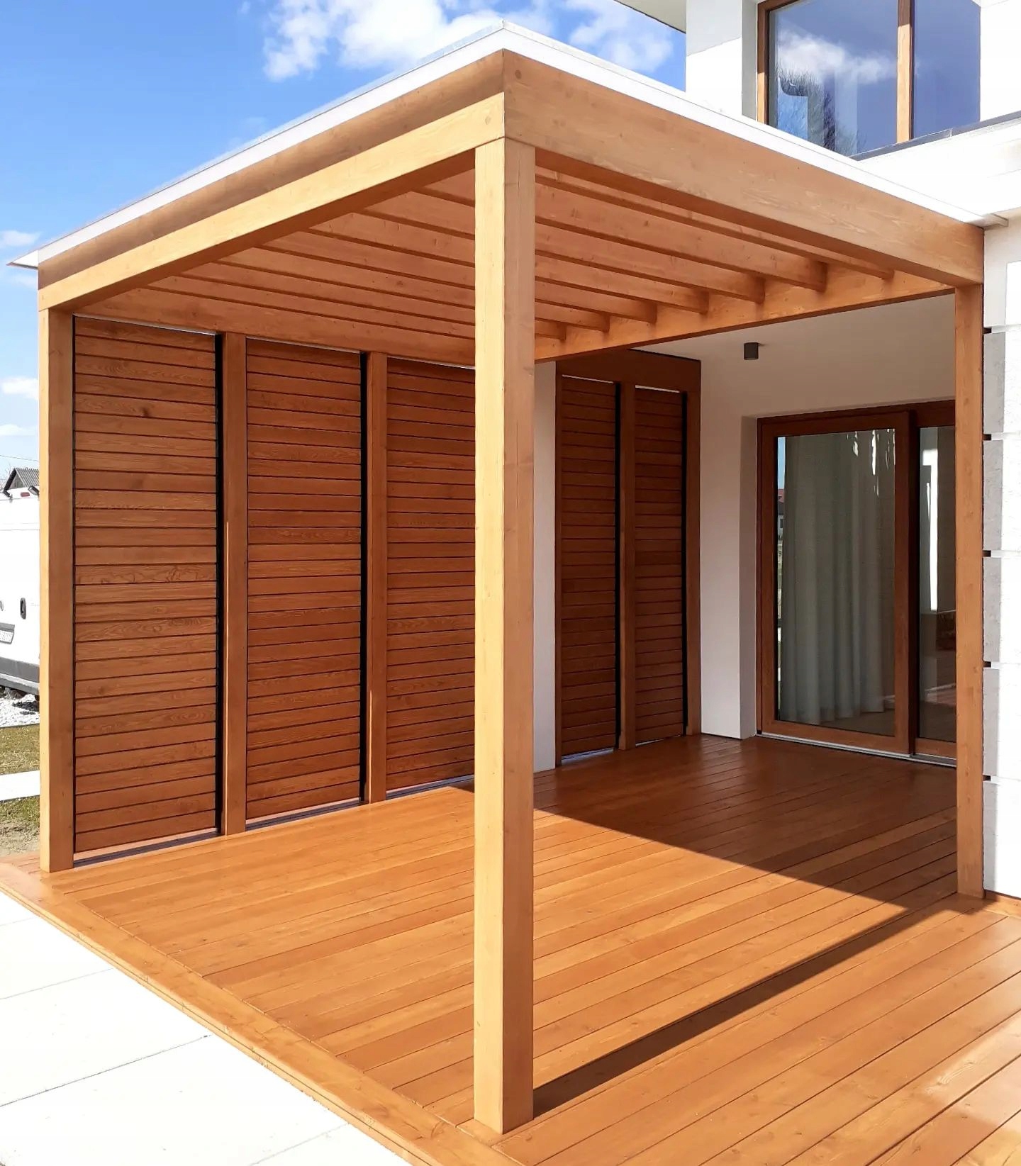 Сучасні будинки з терасою часто потребують інноваційного доповнення, яке є дерев’яними жалюзі. Наш продукт ідеально підходить для цього типу будівлі, відрізняється незвичною естетикою та дивовижною функціональністю. Ідеально робота на кожній терасі та балконі.