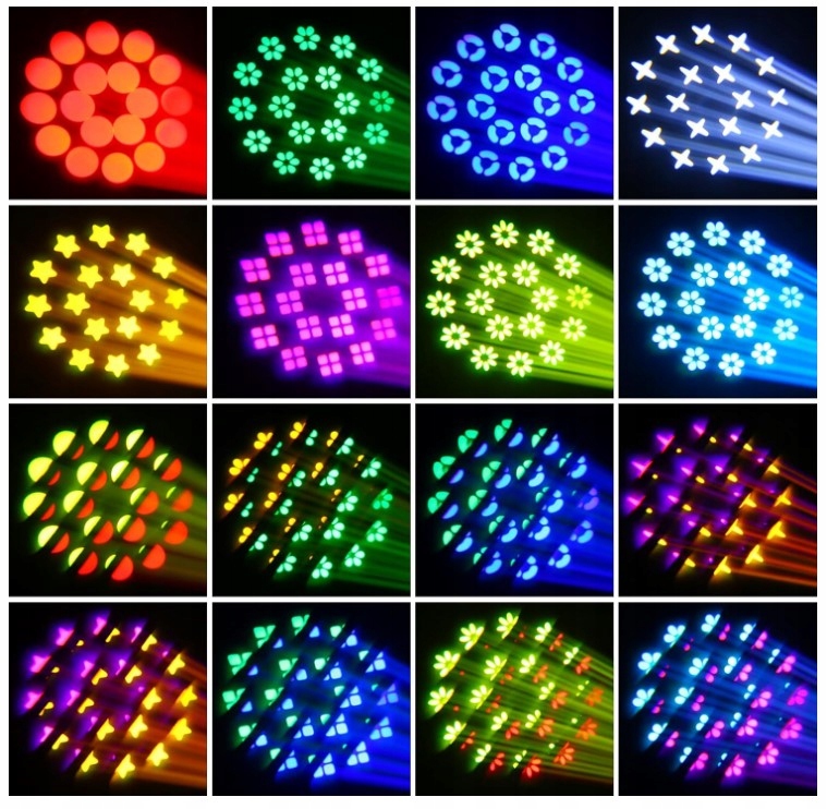 DJ етапне освітлення має 8 Gobo та 8 кольорів . Багаті ефекти ідеально підходять для барів, різдвяних подій, сцен, весіль, театру, церкви та дискотеки. Це найкращий вибір з точки зору діяльності.
