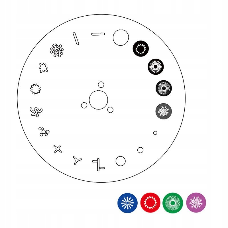 - Колірне коло: 14 кольорів + відкритий, ефект веселки
