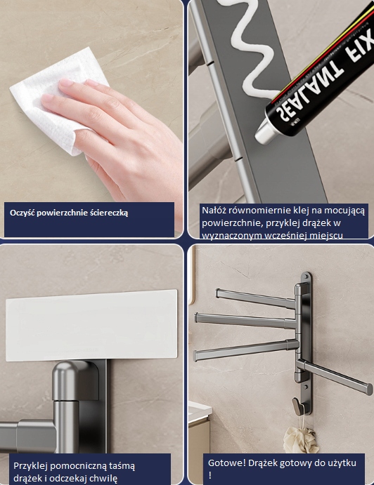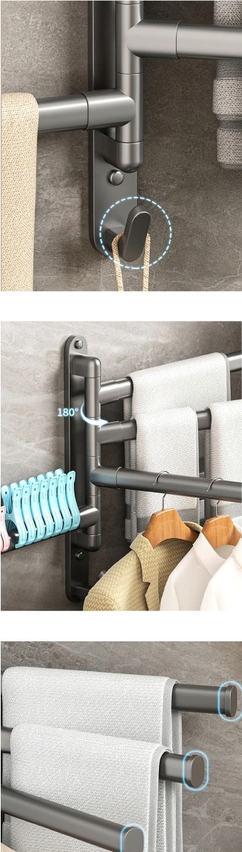 Елегантний і практичний руховий стрижень для чотирьох рушників у чорному - ідеальне рішення для вашої ванної кімнати. Суцільна конструкція забезпечить надійну підвіску для рушників, заощаджуючи цінний простір. Завдяки універсальному кольору, він ідеально поєднується з різноманітним дизайном інтер'єру. Він ідеально підходить для домашнього використання та в готельних ванних місцях.