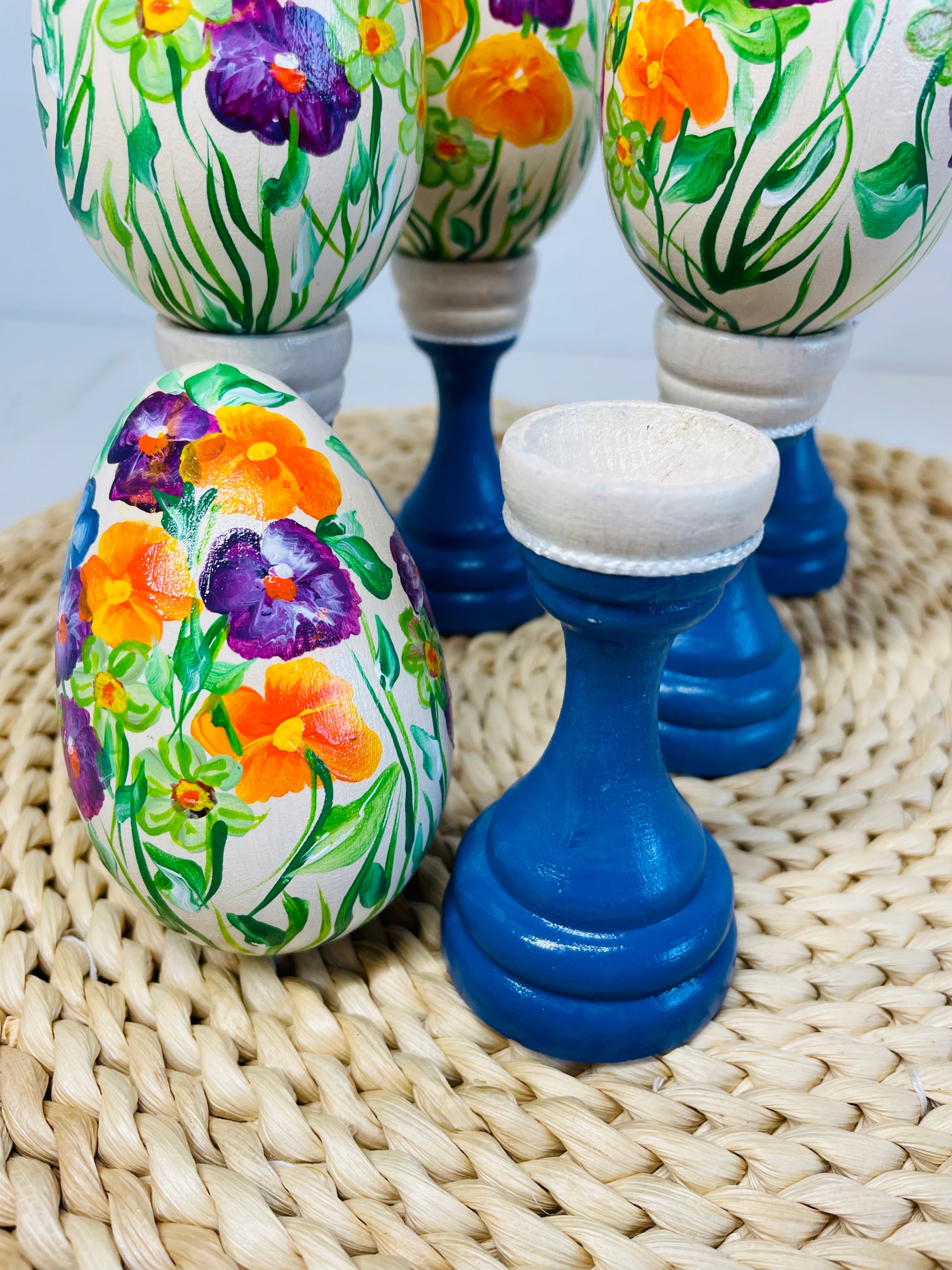 Рука - розфарбоване дерев’яне яйце з пансіонами та підставкою - пружинний акцент