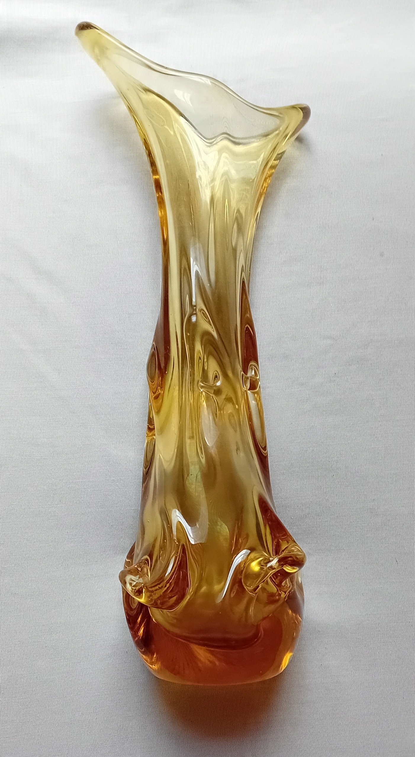 Я продаватиму вазу, сформовану рукою, маса, пофарбована в масу. Висота 29,5 див. Розміри інфузії 11,3 х 5 см. Діаметр ДНК 6,2 див. Досить хороший стан. Приблизно на 2 см нижче наповнювача знаходиться заводський недолік - матове потовщення, ймовірно, шпилька з плоскогубців. Вад не дуже помітна, показана на знімках. Робочі подряпини внизу нижньої частини. Всередині невеликого і не дуже помітного осаду для очищення.