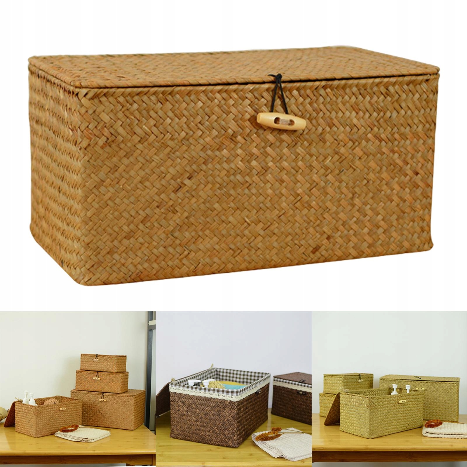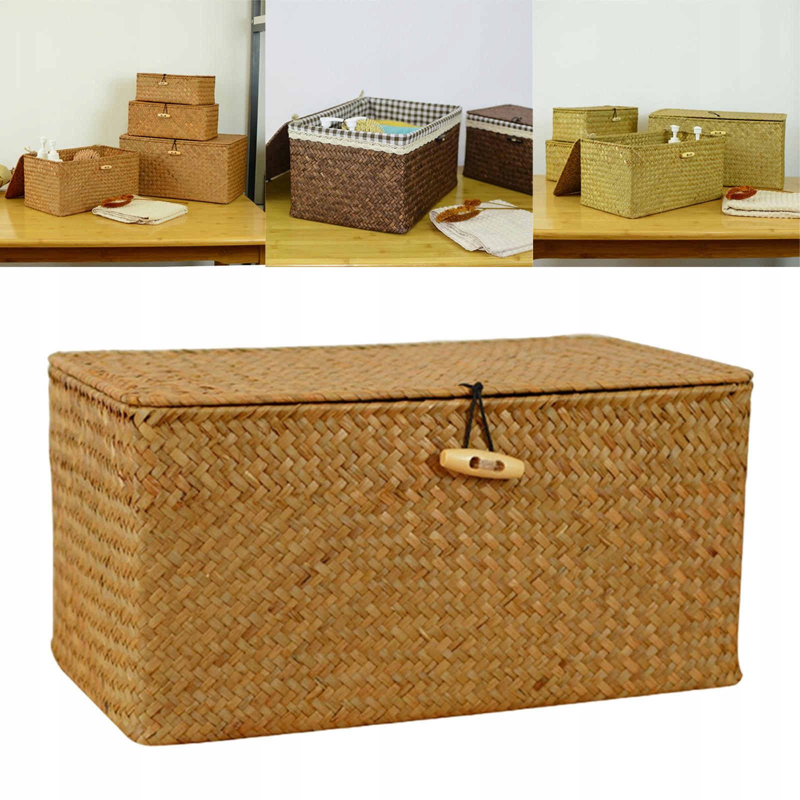 Матеріал: плетені плетені кошики виготовлені з морської трави. Ткані кошики з природної морської трави з кришкою допомагають зберігати важливі речі на місці та продовжувати порядок вдома. Обкладинка допомагає засмічувати інтер'єр, роблячи будинок акуратним та акуратним. Прямокутні плетені кошики чудово підходять для журналів, ігор, тваринних іграшок, медіа, предметів домашнього вжитку. 26x16x10cm/10.24x6.30x3.94 дюйм