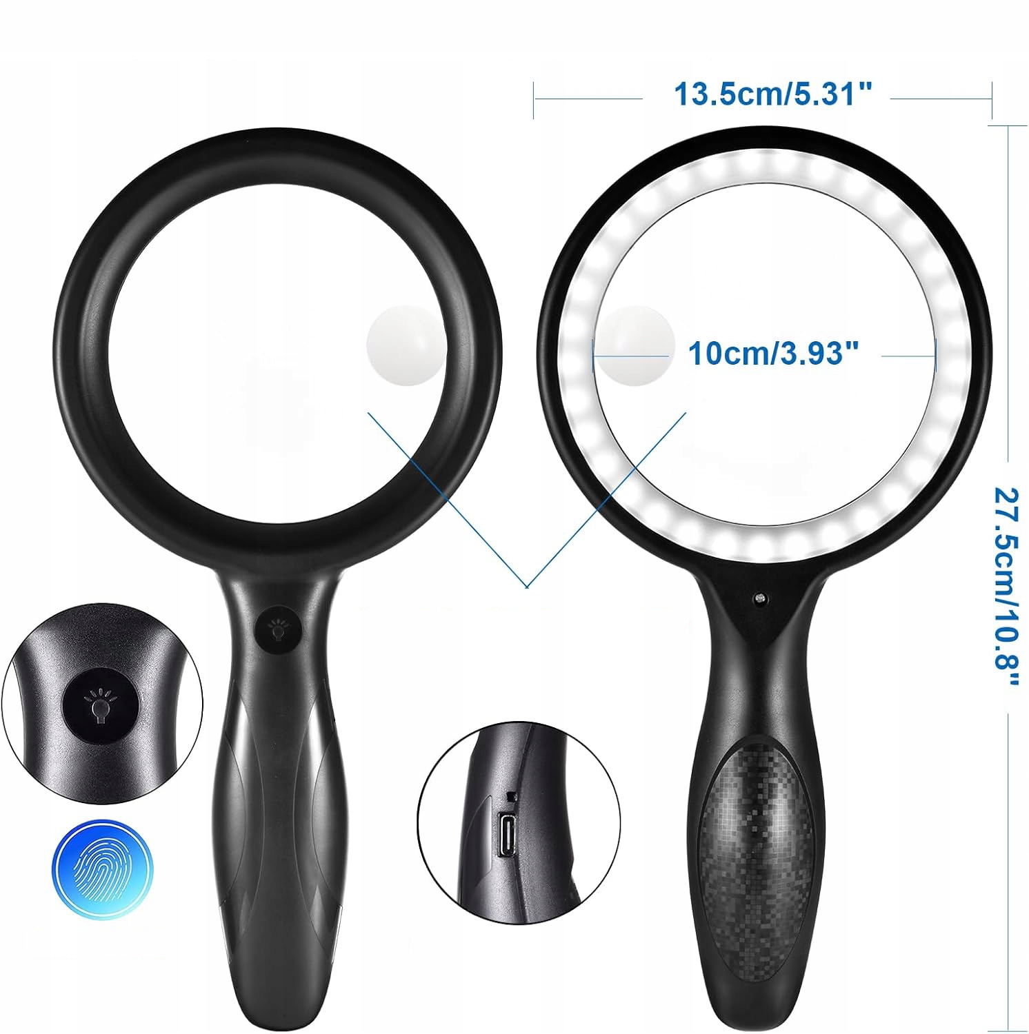 【LED Magazine з можливістю зарядки через USB】 вбудований інтерфейс USB може бути заряджений де -небудь і часу, зручніше. Портативний посібник USB -лупу дуже підходить для людей похилого віку, дітей, пацієнтів з дегенерацією макули та людьми з дефектами зору.