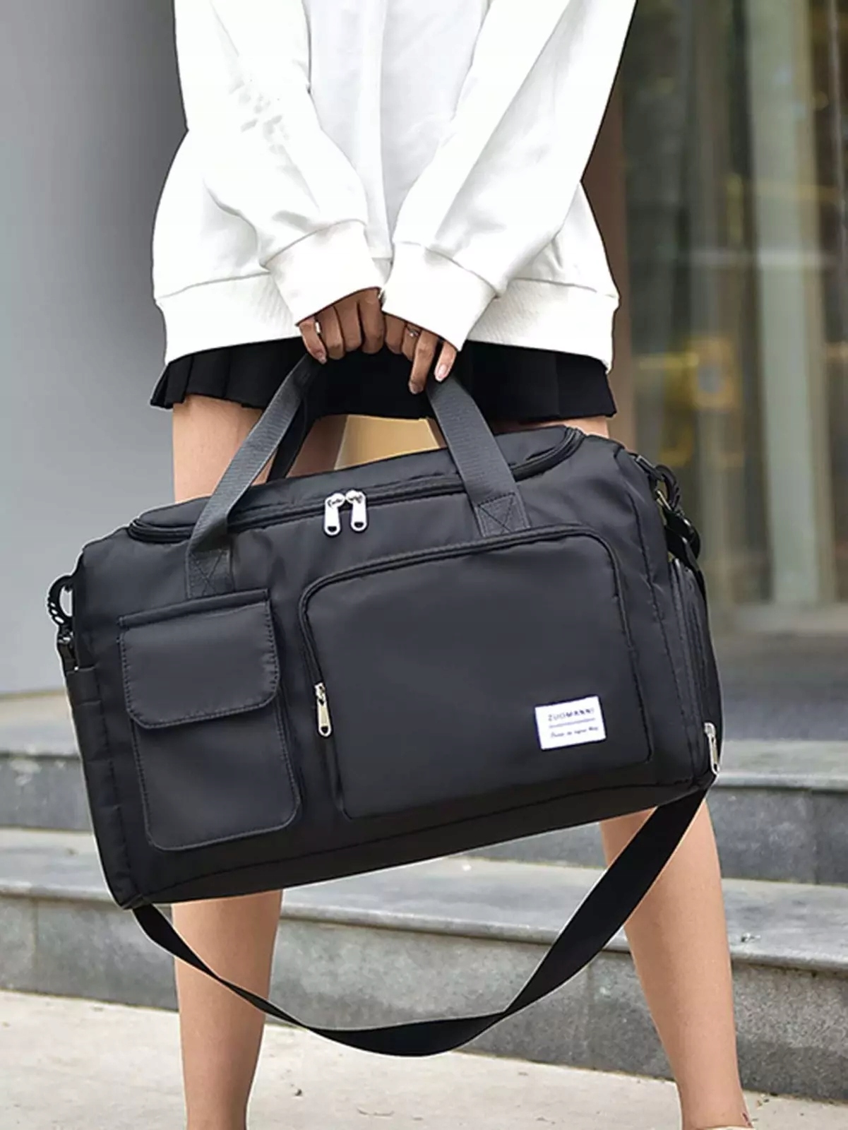 Зручна мішка для подорожей, тренажерний зал тощо. Чорний. Ця тканина є водонепроникною, тому навіть під час дощу речі переносяться посередині сумки, вони захищені на 100% від мокри. Ремінь регульований, виготовлений з міцної матеріальної стрічки. У бічній частині сумки є ідеальна кишеня для взуття.