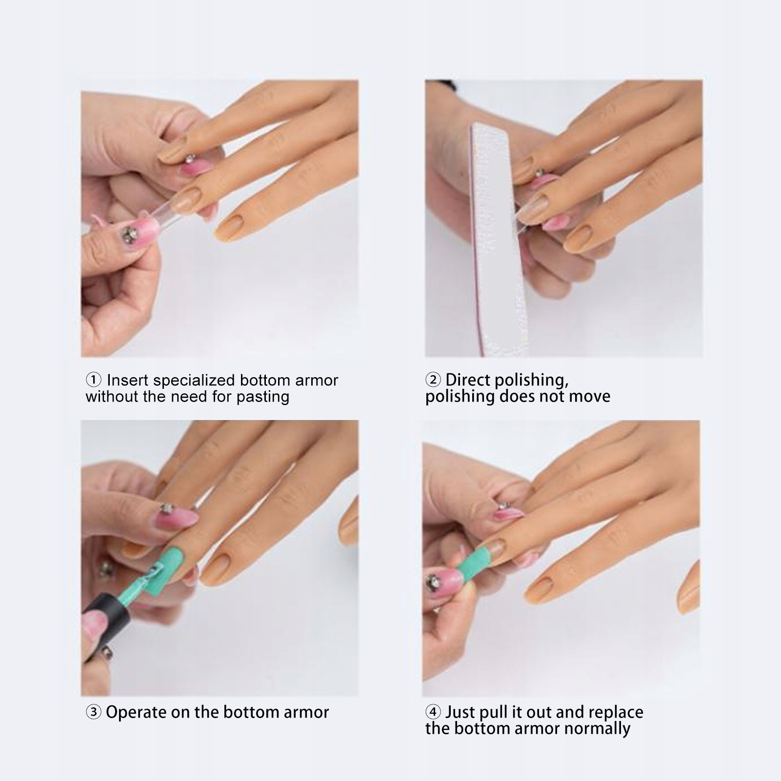 5, у наборі Stojak: Пакет містить підставку з присосною чашкою, яку можна прикріпити для більш плавних поверхонь і регульовано в 360 градусах, ідеально підходить для початківців, що практикують манікюр. Набір також включає прозорі ремінці для нігтів для полегшення вправ.