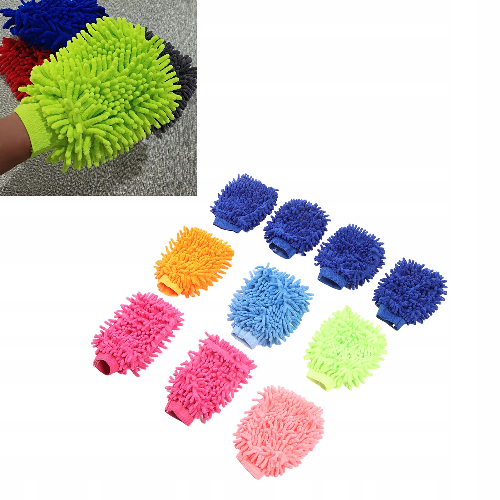 5. Набір із 10 предметів у різних кольорах: кожен набір включає в себе 10 рукавичок для автомийки різних кольорів, які відповідають різним уподобанням і потребам.