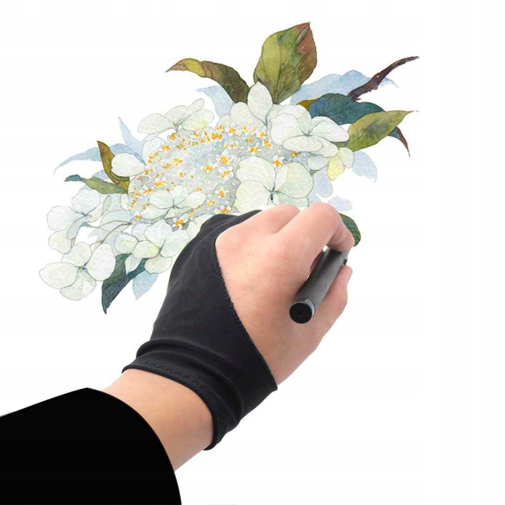 Універсальна рукавичка на два пальці є необхідним аксесуаром для кожного художника чи дизайнера комп’ютерної графіки. Завдяки слизькому, гладкому матеріалу, він дозволяє плавно переміщати зап’ястя по робочій поверхні, наприклад, по паперу, планшету, дошці, стіні. Завдяки цьому ви уникнете утворення некрасивих смуг або слідів від поту під час малювання. Завдяки цьому ваша робота займе набагато менше часу!