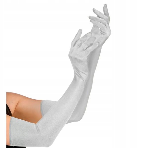 РУКАВИЧКИ АТЛАСНІ ДОВГІ СРІБНІ 60СМ АКСЕСУАРИ