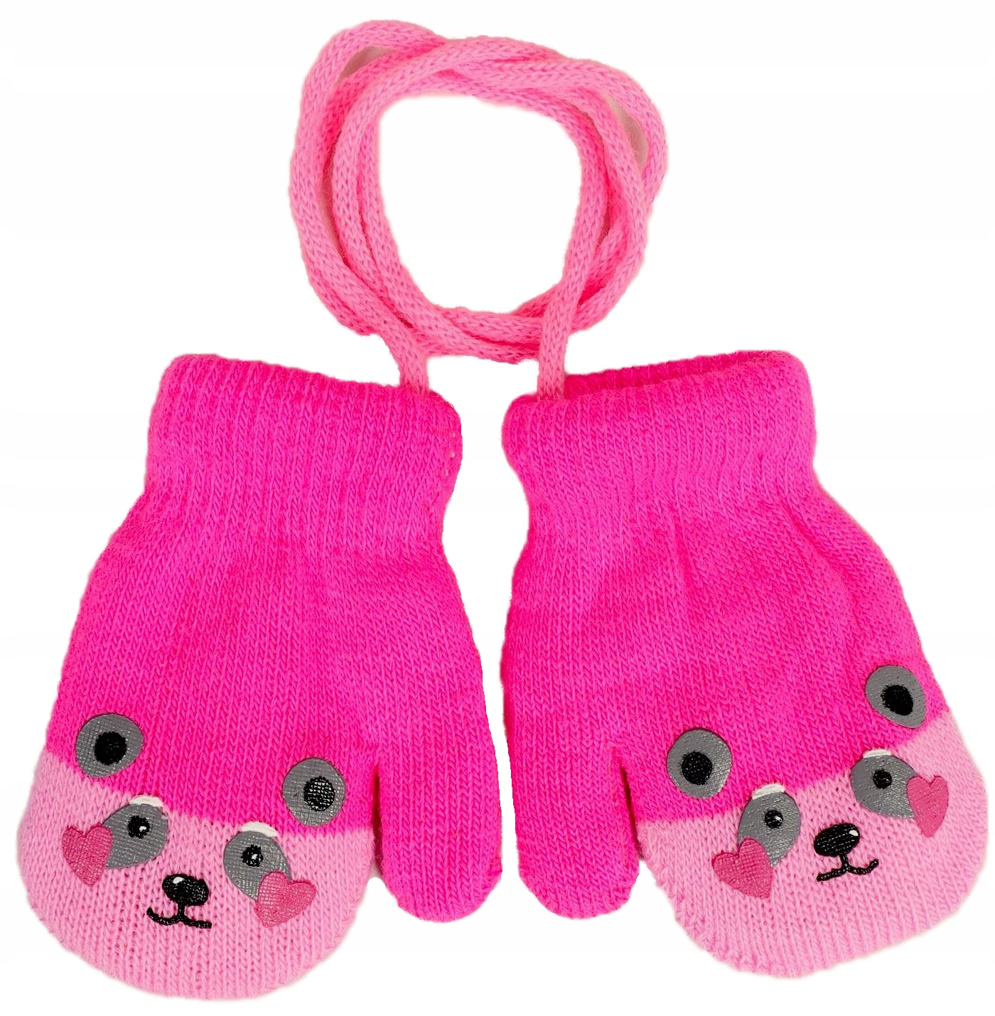 РУКАВИЧКИ ДИТЯЧІ ОДНОПАЛЬЦІВНІ ДВІЙНІ ТЕПЛІ НА ШНУРКУ ВЕДМЕДИК 12 СМ