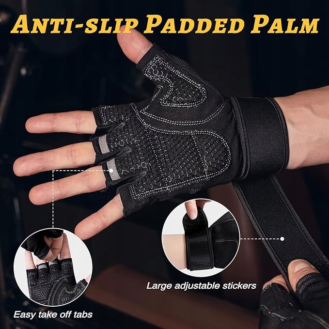 рукавички для фітнесу для чоловіків і жінок, тренувальні рукавички з підтримкою ремінців, спортивними рукавичками для кроссфіту, бодібілдингу, велосипедного руху, тренажерного залу, силових тренувань 1>