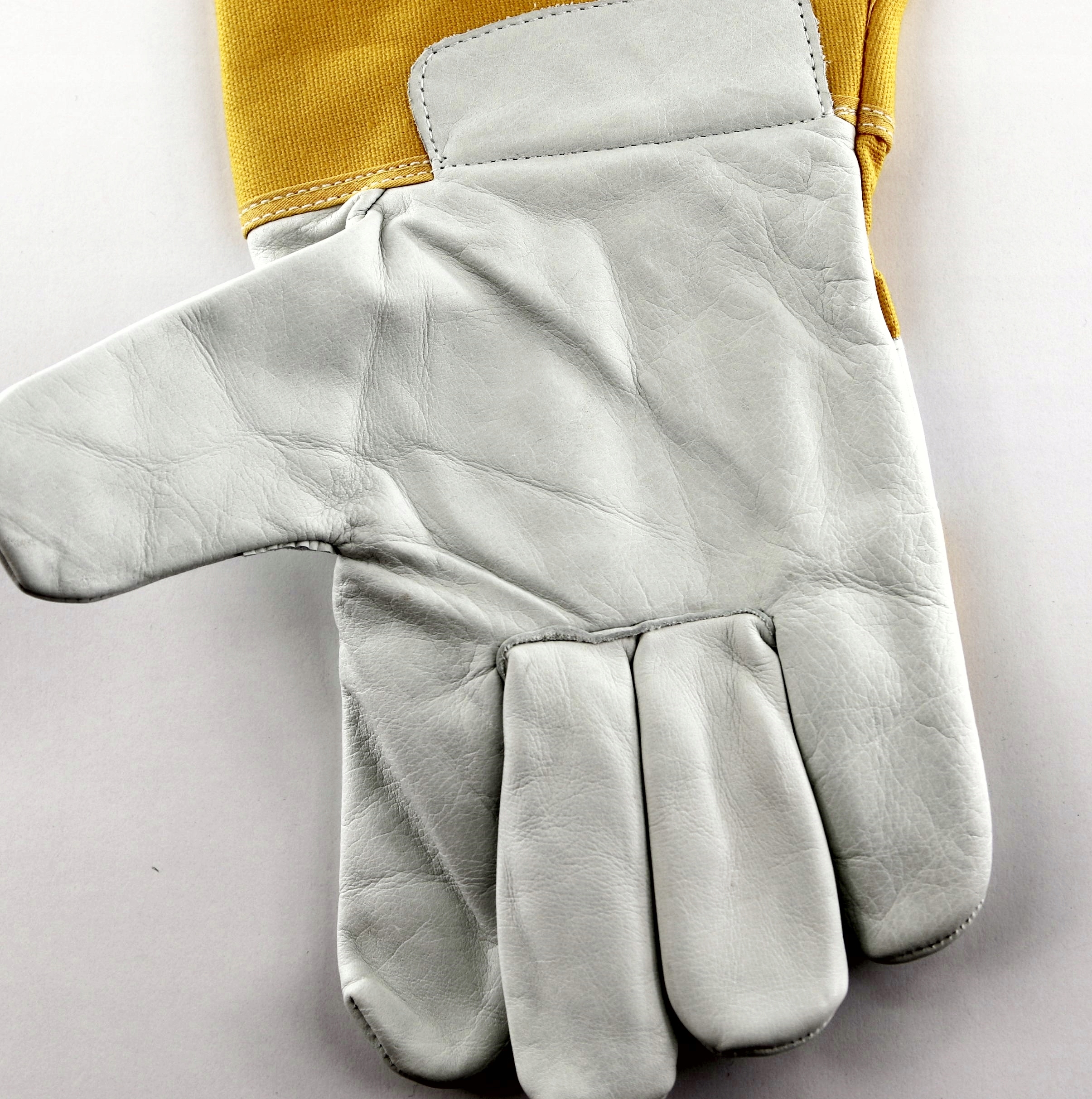 Стійкі до проколів і стирання рукавички, посилені коров'ячою шкірою, з манжетою. Рукавички робочі. Всередині м'яка підкладка забезпечує комфортну роботу. Виготовлений із деніму, посиленого коров’ячою шкірою, що забезпечує високу стійкість до стирання.