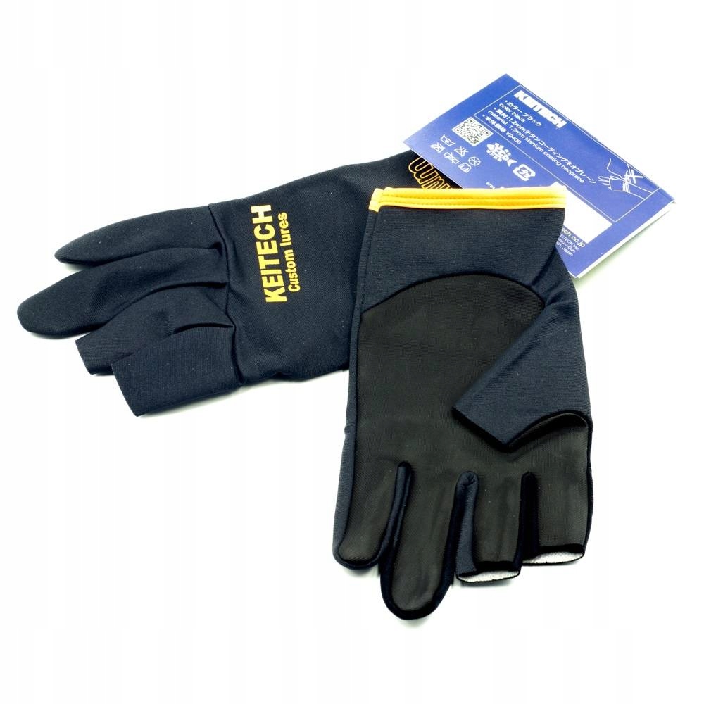 Рукавички Keitech Titanium виготовлені зі зміцненого неопрену. Неопреновий шар є водонепроникним і забезпечує тепло і м'якість. У цих рукавичках пальці: великий, вказівний і безіменний наполовину відкриті. Це полегшує маніпуляції під час риболовлі. На внутрішній стороні рукавички є прогумований шар, який забезпечує фантастичне зчеплення.