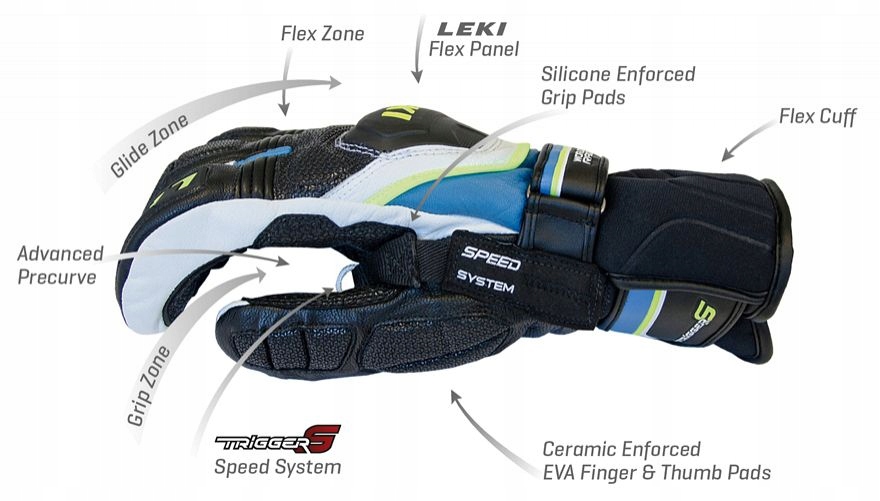 - Професійна зона ковзання: титанова панель LEKI, подушечки для пальців з керамічним посиленням EVA