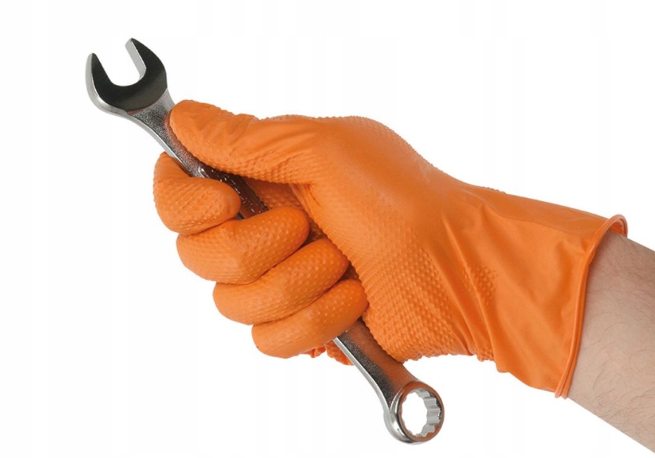 Дуже популярна в майстернях модель рукавичок TIGER GRIP, які, як випливає з назви, посилюють зчеплення руки завдяки спеціально розробленій текстурі. Вони запобігають ковзанню інструментів, що часто трапляється при роботі в гладких пластикових рукавичках. Вони універсальні та чудово працюють у ряді застосувань у майстернях тощо.