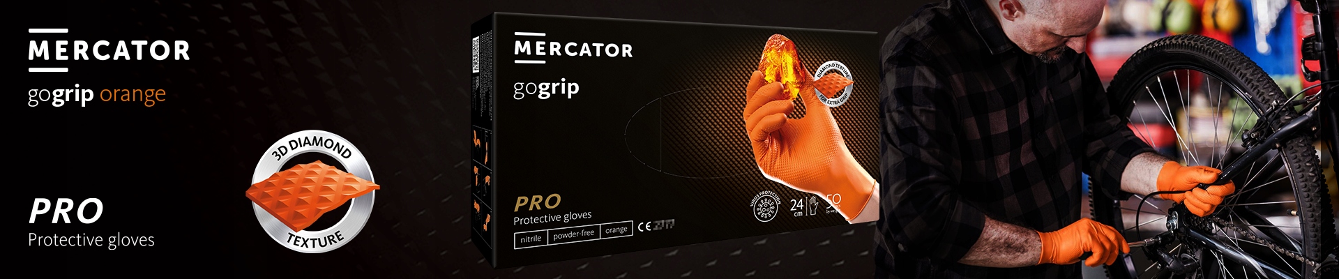 MERCATOR GOGRIP ORANGE/ORANGE - РУКАВИЧКИ, НІТРИЛОВІ, БЕЗ ПУДРИ З АЛМАЗНОЮ ТЕКСТУРОЮ