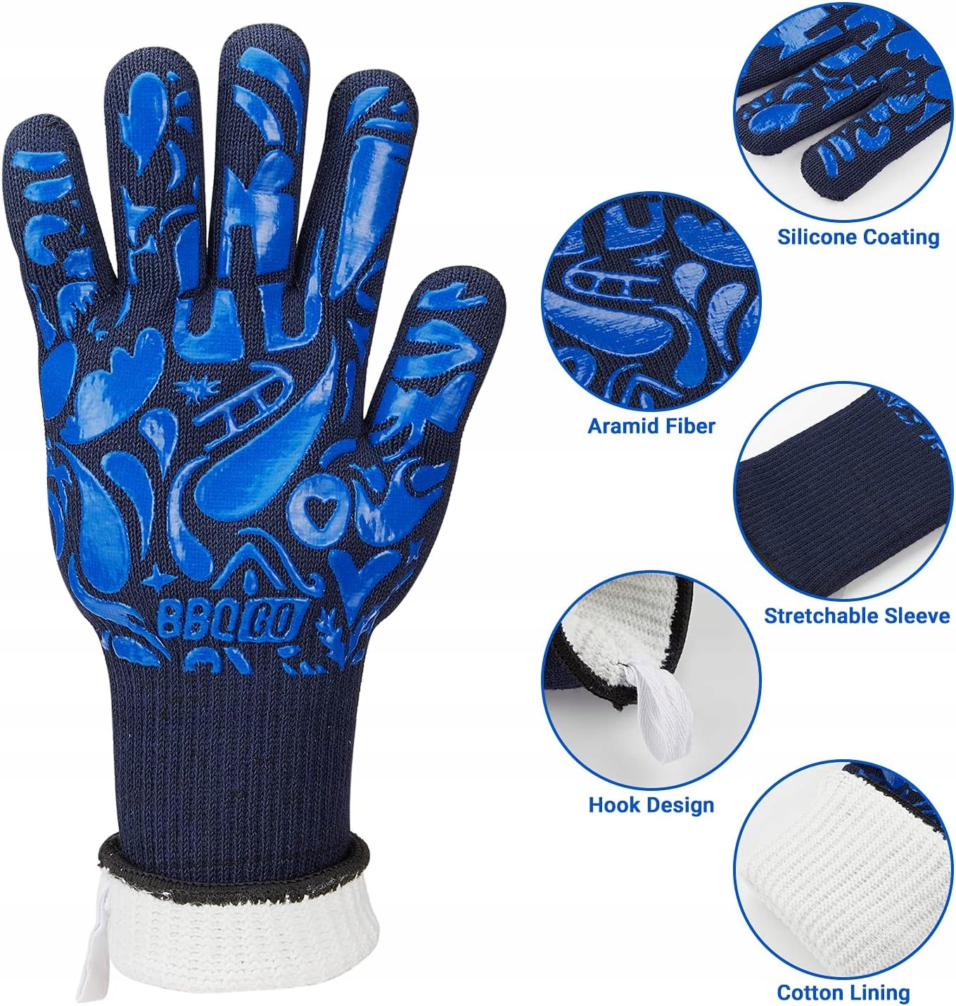 Рукавички на грилі відповідають більшим і меншим рукам. Вони підходять для чоловіків і жінок. Існує багато можливостей використання: кухня, гриль, духовка, мікрохвильова піч, плита, ремонт транспортних засобів, зварювання, електричний ремонт, обробка металу та багато інших. Чудовий подарунок