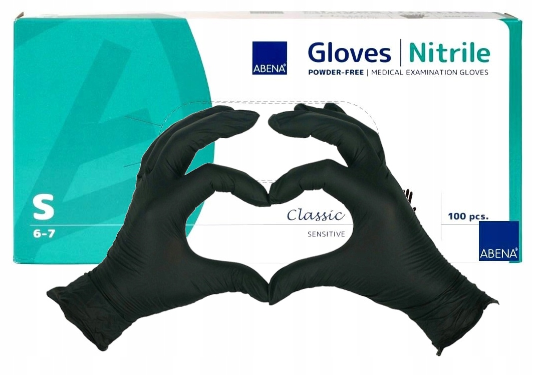 РУКАВИЧКИ НІТРИЛОВІ ЧОРНІ БЕЗ ПУДРИ ОДНОРАЗОВІ ABENA 100 ШТ S