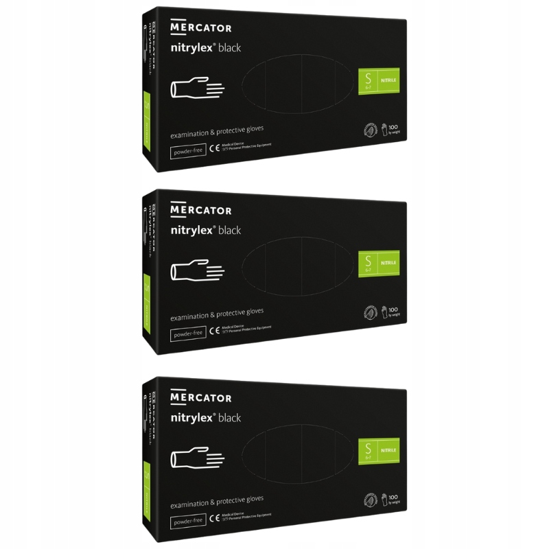 Рукавички нітрилові ЧОРНІ MERCATOR NITRYLEX BLACK розмір S - 3 уп. х 100 шт