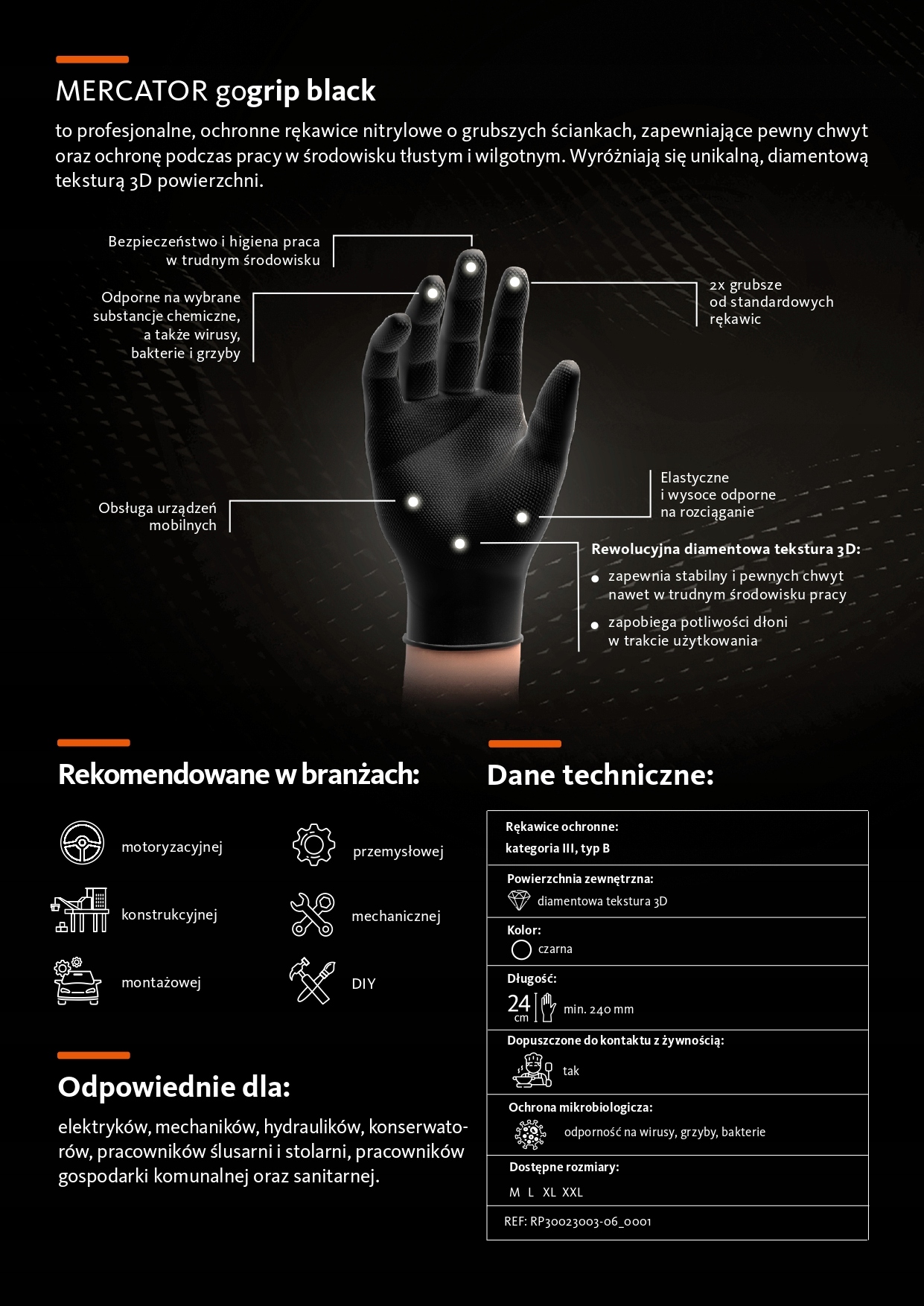 надзвичайно гнучкий Mercator Go grip є у 2 рази товстіші , ніж стандартні рукавички, доступні на ринку. Ці, виготовлені з постійного нітрилу, рукавички характеризуються революційованою алмазною 3D -текстурою, , що робить ваше зчеплення сильним і стабільним і в той же час не обмежує вашу точність. Оригінальна структура Mercator Go grip призведе до того, що послуга мобільного пристрою може відбуватися без видалення рукавичок - тому ваші руки все ще захищені від зовнішніх факторів. Завдяки унікальному дизайну ваші руки не потіють, завдяки якому ви менше піддаєтесь роздратуванню шкіри. Ідеально пристосована рукавичка гарантує комфорт і ідеально помітні, інтенсивні, зелені кольори виділяється у кожному середовищі.