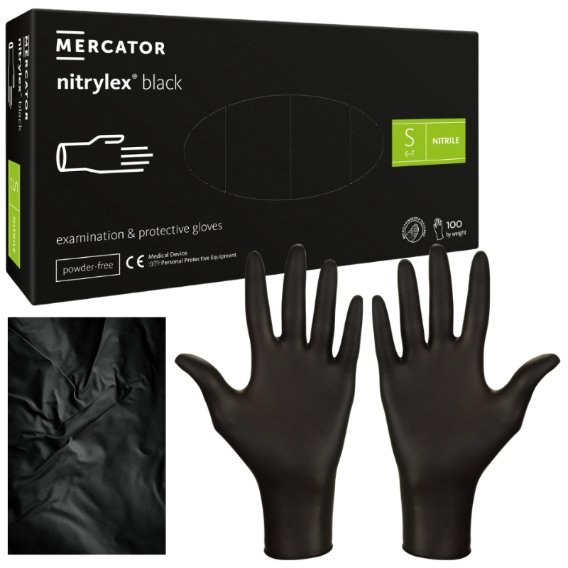 Nitrylex BLACK текстуровані на кінчиках пальців, що забезпечує кращий зчеп і точність при маніпуляціях з предметами. Крім того, ці рукавички не припудрені, тобто не містять тальку, який може викликати подразнення шкіри. Хлорована внутрішня поверхня, згорнута манжета для легкого надягання та зняття.