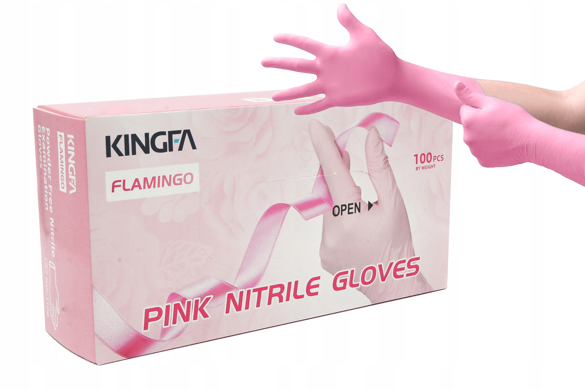 РУКАВИЧКИ НІТРИЛОВІ ОДНОРАЗОВІ РОЖЕВІ KINGFA 100 ШТ XS