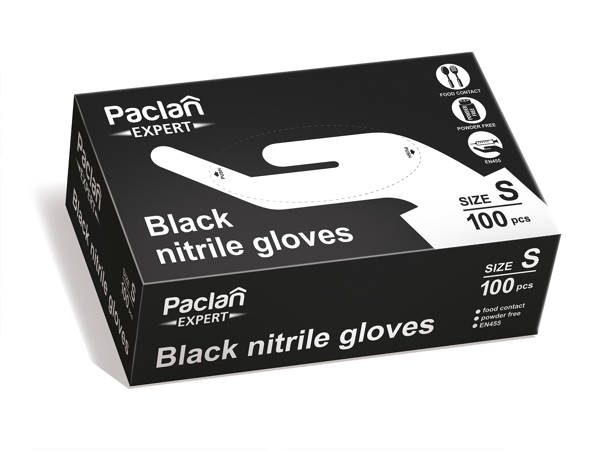 Рукавички нітрилові рукавички S одноразові чорні 100pcs paclan