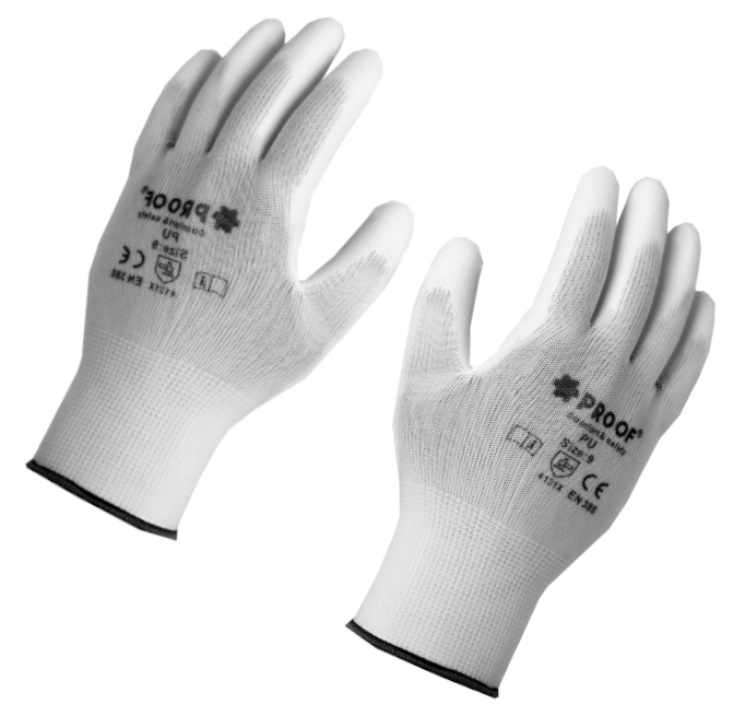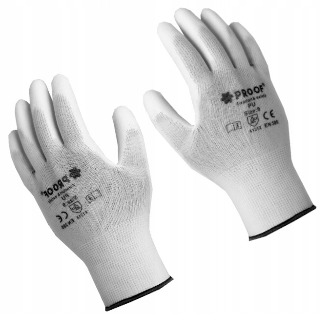 Рукавички, робочі рукавички з поліуретановим покриттям, білі PROOF розмір 10-XL - 1 пара