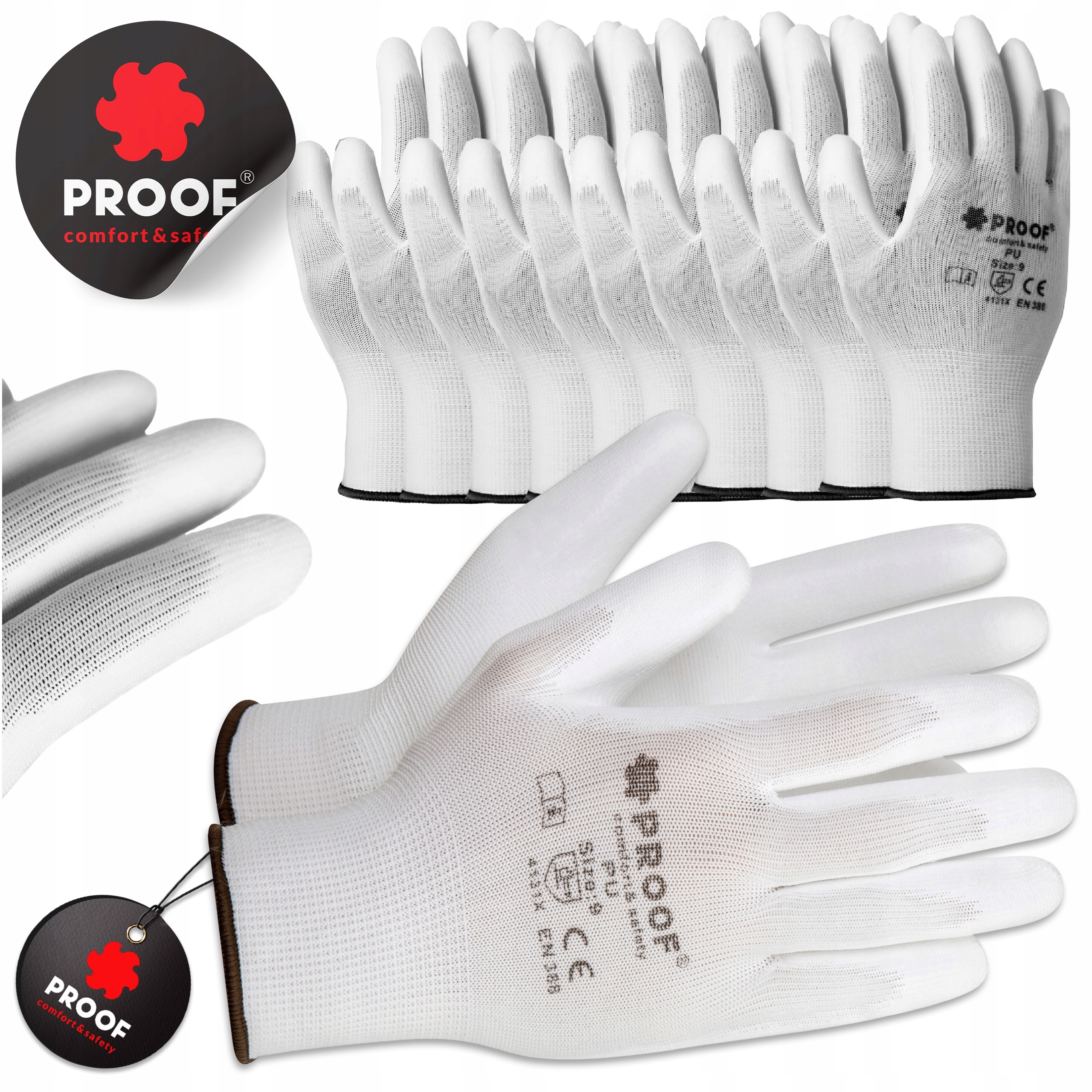 Рукавички Proof RĘKAWICE ROBOCZE BHP PU BIAŁE 7 NAKLEJKA розмір 7 - S 10 пар