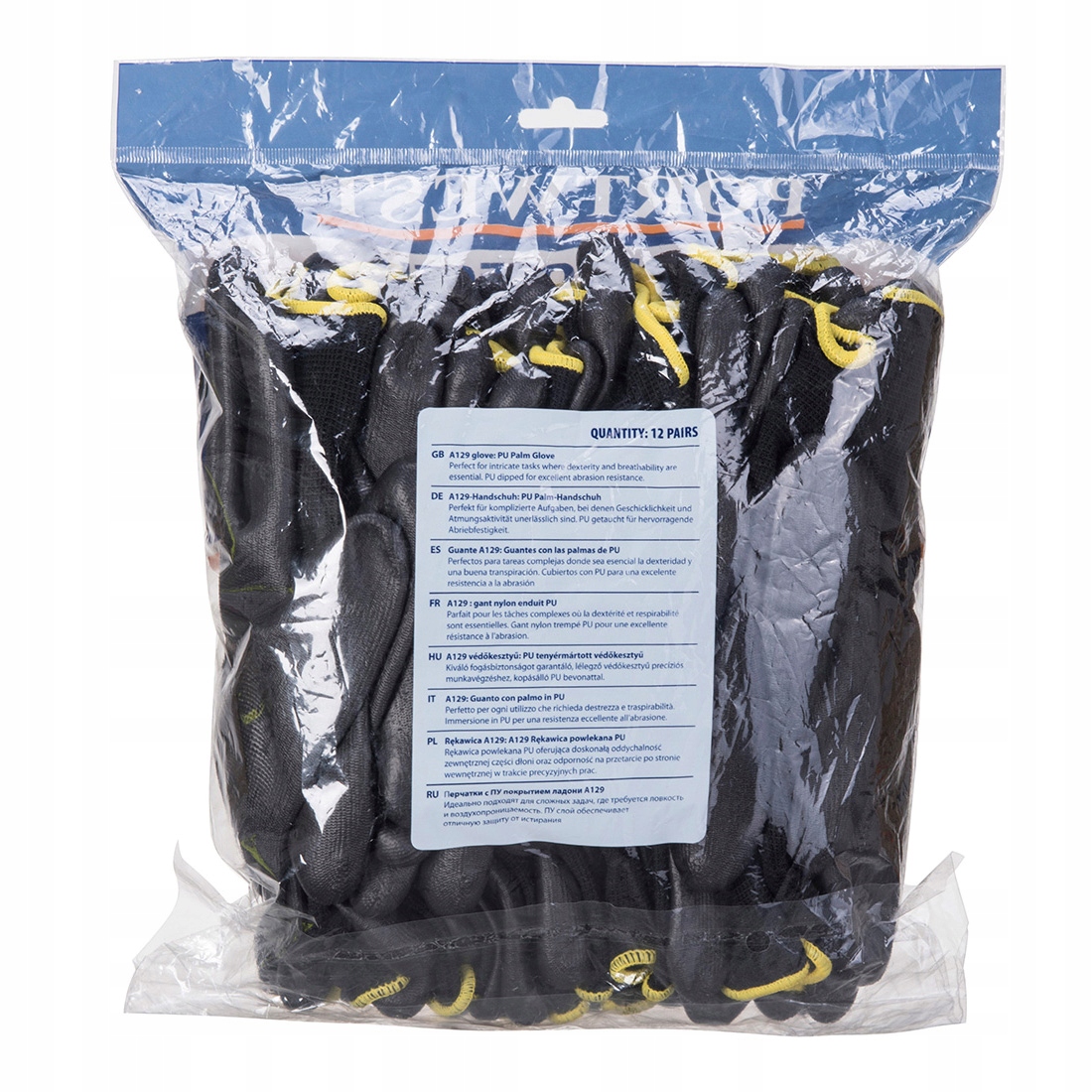 Нейлонові рукавички з поліуретановим покриттям у дуже зручній упаковці 12 пар.