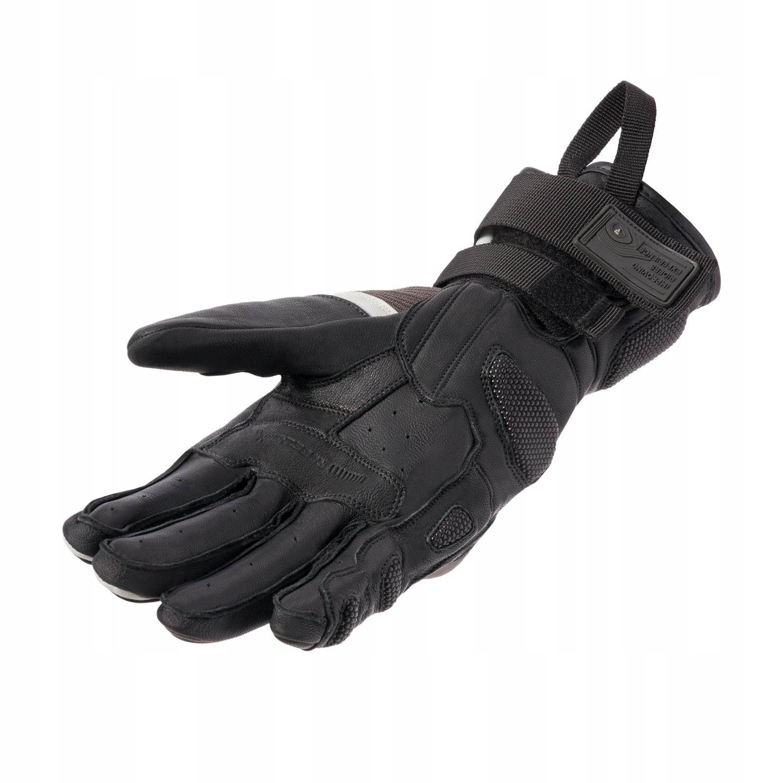 Рукавички для туристичних мотоциклів Rebelhorn Range мають м'які протектори для суглобів пальців SAS-TEC® і вставки для поглинання ударів на внутрішній стороні та манжеті. Нижня частина рукавички посиленаSuperfabric® і має додатковий шар шкіри, що захищає від стирання. Склоочисник, розміщений на великому пальці, покращує комфорт під час дощу, а спеціальні панелі дозволяють керувати сенсорними екранами, не знімаючи рукавичок.