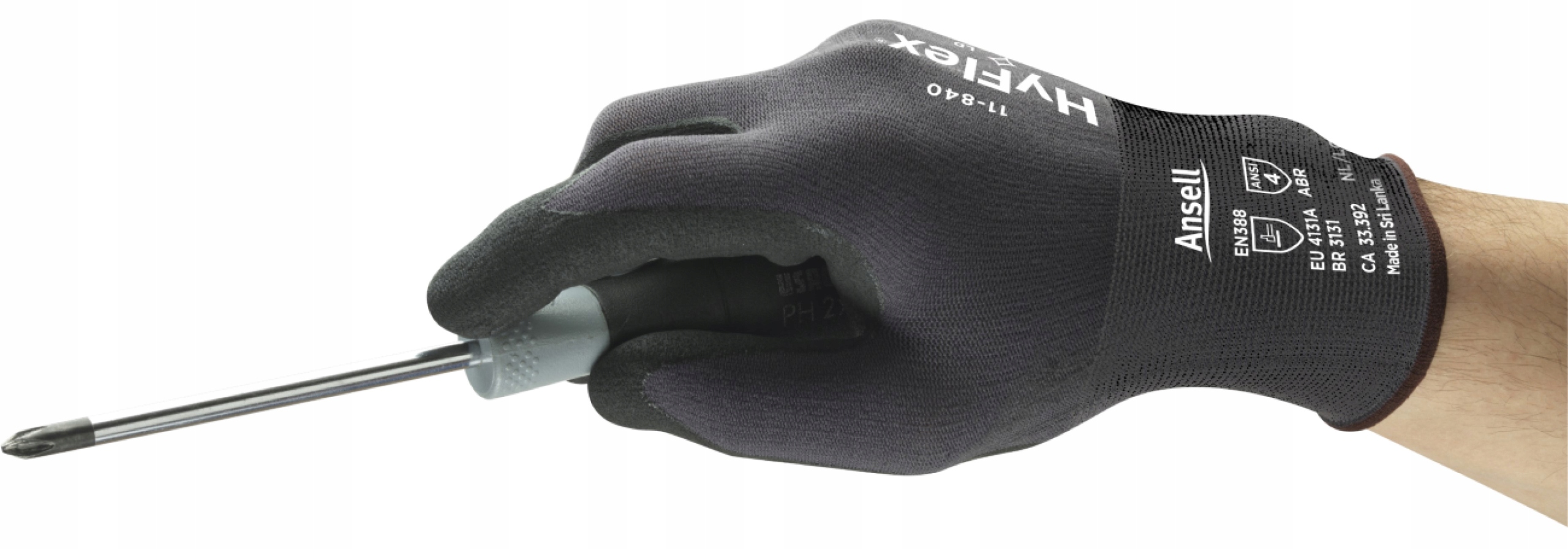 Сімейство промислових рукавичок Ansell HyFlex® розроблено для застосування, що потребує високого комфорту та захисту від натирання . Вони дозволяють точно захоплювати дрібні предмети в сухому або злегка жирному середовищі. Рукавички HyFlex® - це практичний вибір для тих, кому потрібна спритність. HyFlex® забезпечує підвищену безпеку, спритність і довговічність порівняно з іншими рукавичками, які часто використовуються в тих самих цілях. Міцні рукавички 11-840 забезпечують удвічі краще зчеплення та до 20% більше захисту від стирання