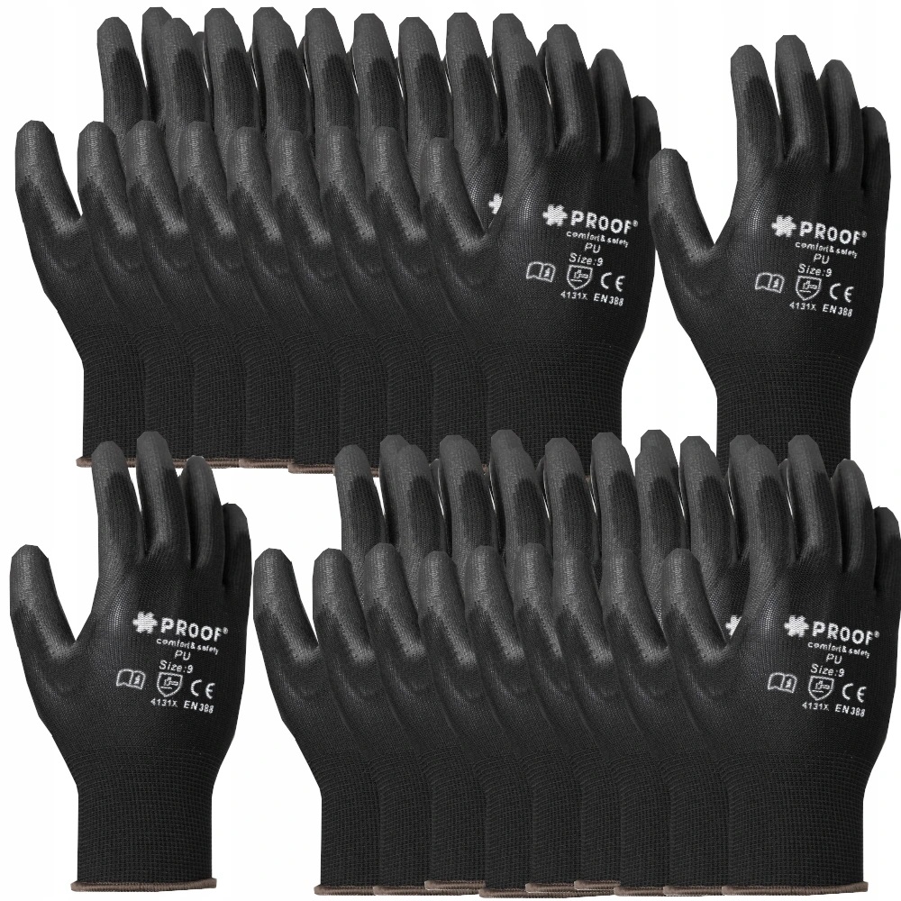 Рукавички, робочі рукавички з поліуретановим покриттям, чорні PROOF розмір 11 - 10 пар