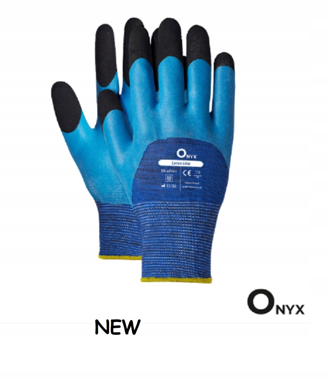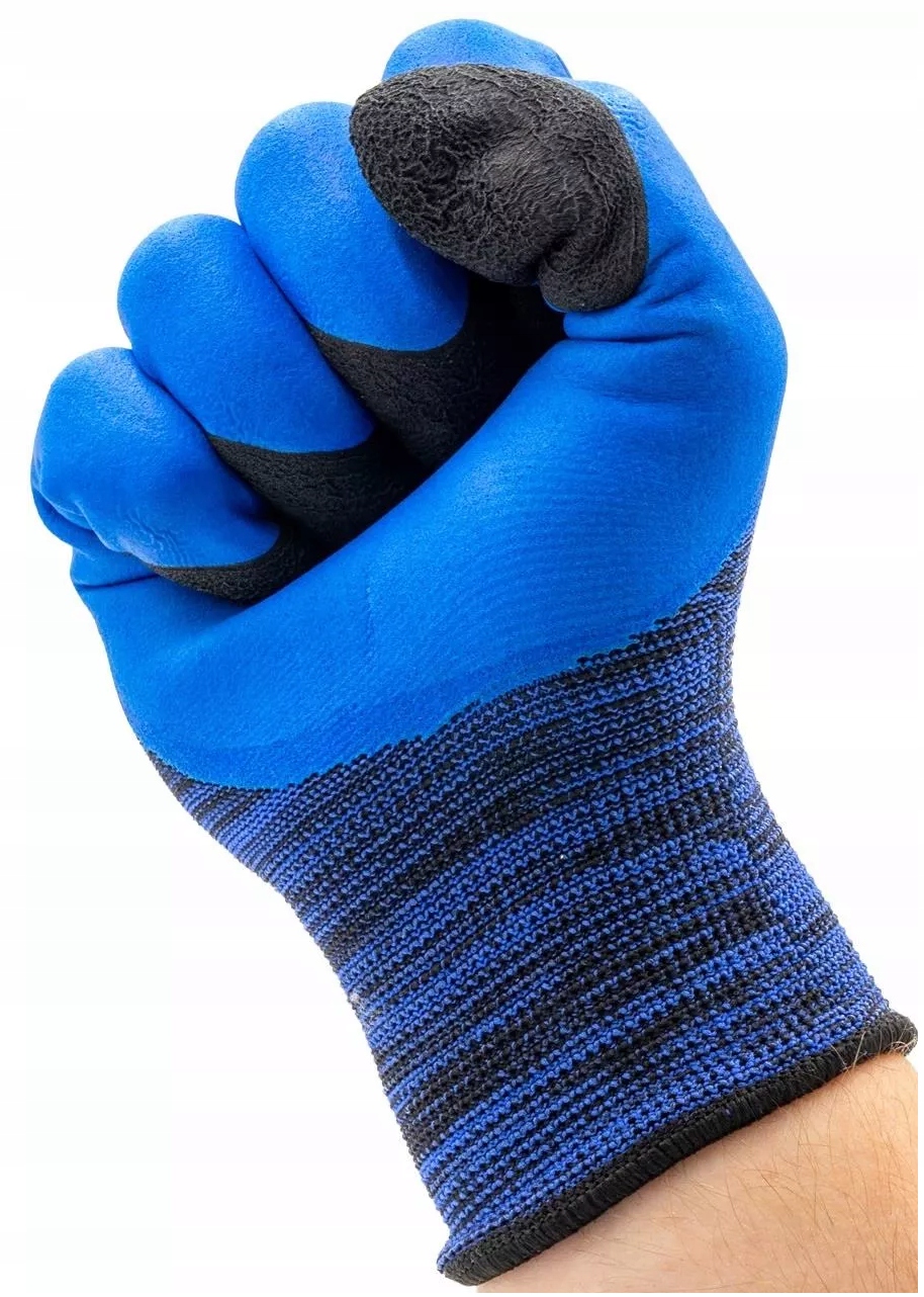 - Рукавички з безшовного синього поліефірного трикотажу, покритого гладким синім і чорним грубим, міцним і міцним латексом.