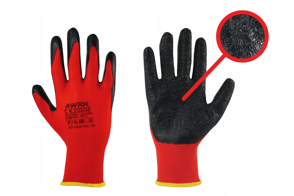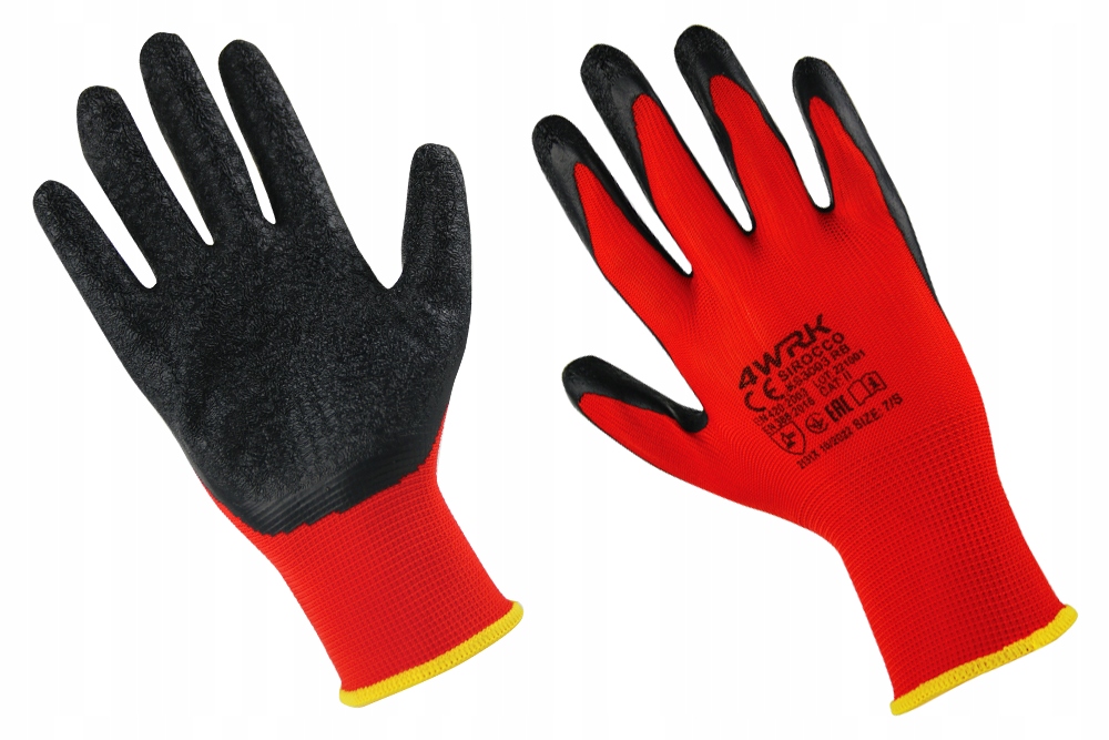✅Червоні поліефірні рукавичкивкриті шаром чорного латексу. Рукавички використовуються для загальних і механічних робіт через їх високу стійкість до стирання, розривів і проколів. Крім того, вони дуже гнучкі, а пористість латексу забезпечує дуже хороше зчеплення та адгезію.