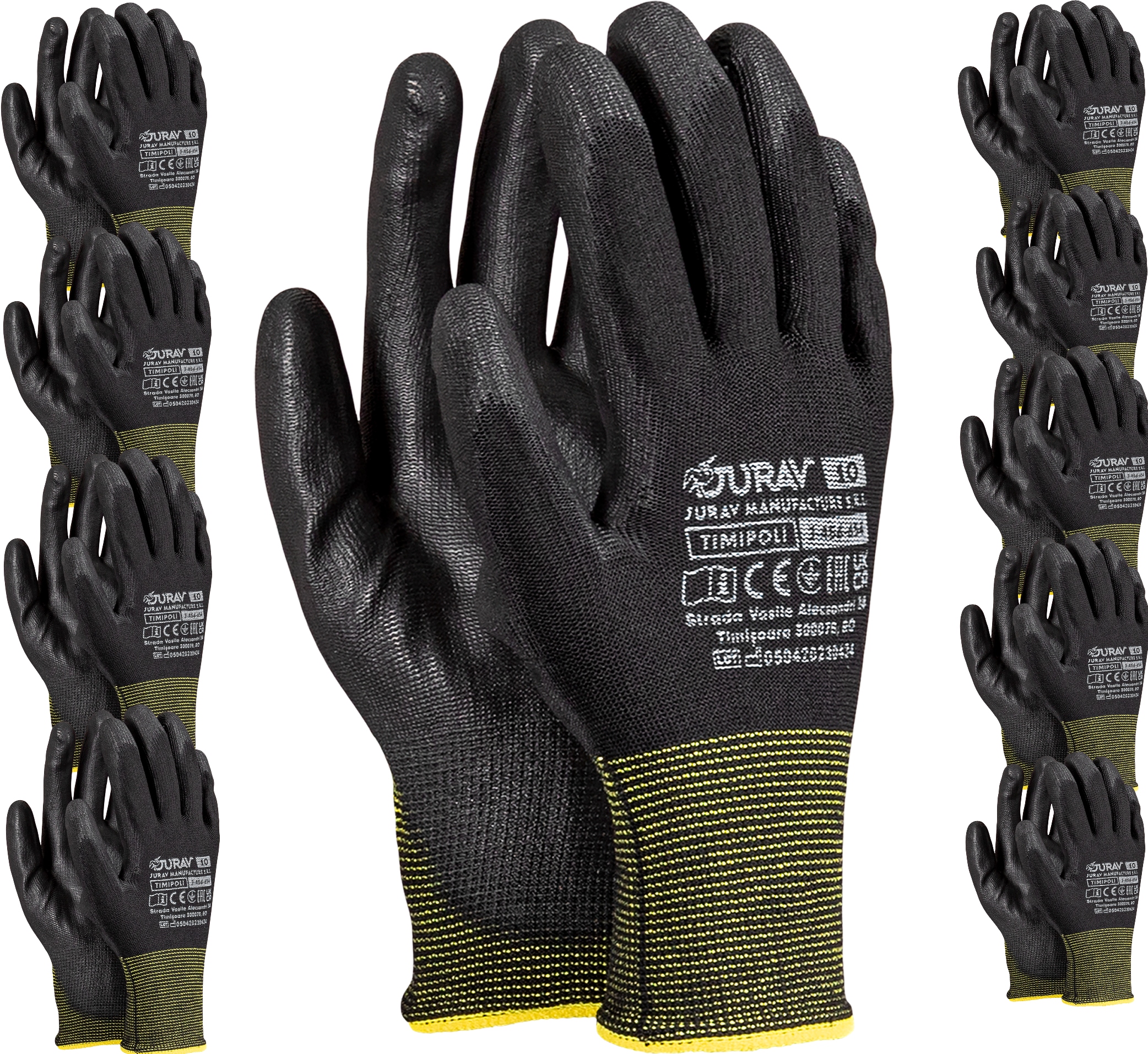 Захисні рукавички з поліестеру з поліуретановим покриттям.
