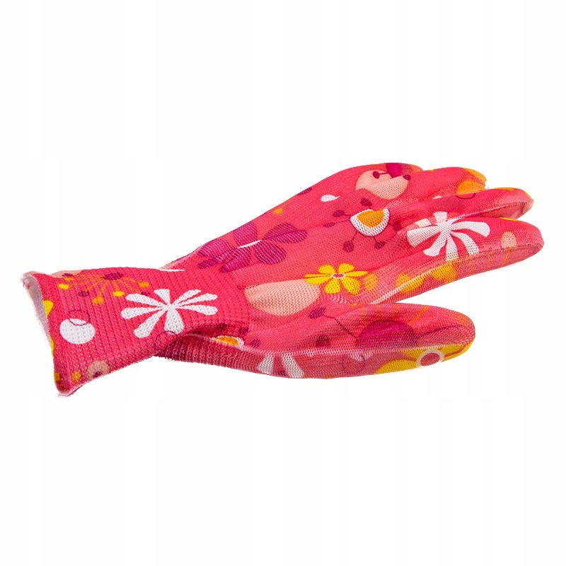 Рукавички робочі, захисні, жіночі, з квітковим малюнком, поліестер, на долоні покриті поліуретаном - DALIA.